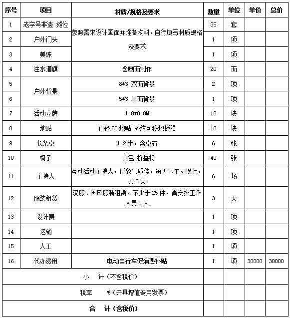 备注:以上代办费用3万元(不含税),在本次招标预算总价中为总金额包干,由中标方实际运作,最终金额以实际支出为准。