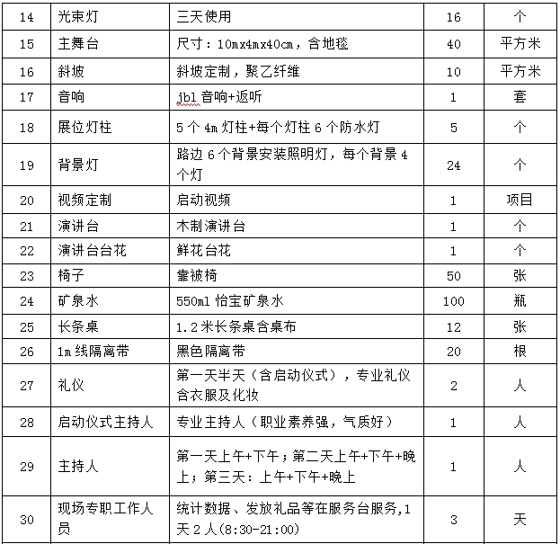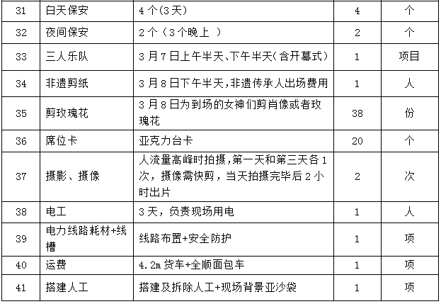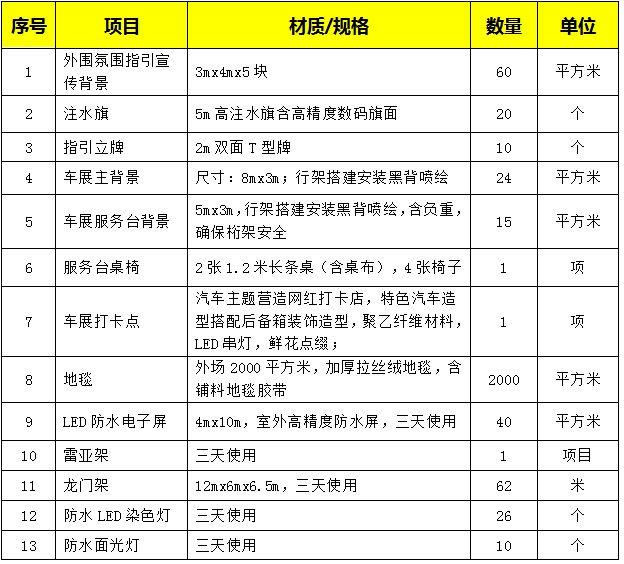 (四)活动内容项目明细:(活动最终具体布置规划、区位地点、时间以发标方书面通知为准。)