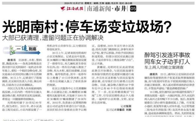 舆论监督“一追到底”专栏刊发稿件《光明南村:停车场变垃圾场?》