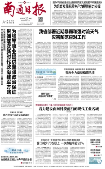 围绕深入学习贯彻习近平新时代中国特色社会主义思想、党的二十大和二十届三中全会精神、庆祝中华人民共和国成立75周年、高质量发展、新质生产力等重大主题,统筹全媒体平台,开设“新思想引领新时代改革开放”“奋进强国路 阔步新征程”“庆祝中华人民共和国成立75周年”“江海两新在行动”“向新而行——新质生产力发展在南通”等专题专栏,持续推出融媒体报道,不断增强重大主题报道的吸引力和感染力。精心组织、精细谋划党的二十届三中全会、全国全省全市两会、南通获批全国首批沿海开放城市40周年等重要会议活动、重要时间节点宣传报道,取得较好传播效果,充分体现南通报业在重大主题、重要节点宣传中的应有担当、创新作为。