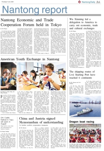 积极运用全媒体矩阵,对外扬名造势,努力讲好新时代南通故事,传播好南通声音。推出英文版,每周一期,全年刊发近50期,南通发布客户端开设“洋眼看南通”专题,推荐集纳英文版上的重点稿件和精彩内容,在对外推介宣传南通中发挥了积极作用。积极为“投资南通”账号提供优质内容,《太燃了!南通这里的烟火秀,绝美!》《演绎“中国的哈姆雷特”,古装越剧<白罗衫>精彩上演》等多个原创短视频在南通x、facebook等海媒账号播出。继与新华社江苏分社签订战略合作协议、共建“媒体融合创新发展中心”后,2024年,集团又与上海报业集团签署媒体融合协同发展战略合作框架协议,与澎湃新闻联建“长江口创新协同研究基地”,借央媒“大船出海”,扩大报业内容品牌的国际传播力。