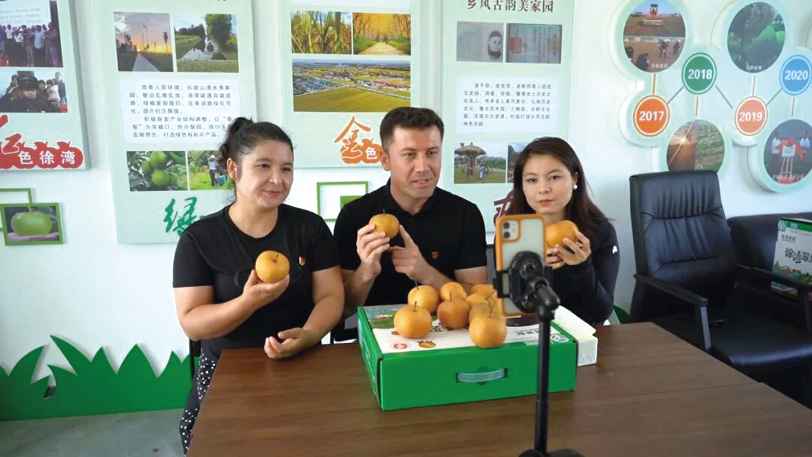 “咱们徐湾的翠梨形美、皮薄、味甜……”社区直播间里,伊宁县的实践锻炼人员亲自参与了带货,社区巧妙搭建起农产品与消费者之间的“云端桥梁”,微信小程序、电商平台齐头并进,不仅让新鲜的翠梨走俏市场,还把梨膏、梨糖等衍生农特产品也推向了全国。“在直播上,这里有好多经验值得我们学习。”伊宁县吉里于孜镇五道桥村党支部副书记买地努表示,希望今后可以通过直播间推介更多新疆的特产,让新疆和如皋、南通一直保持良好的交流。