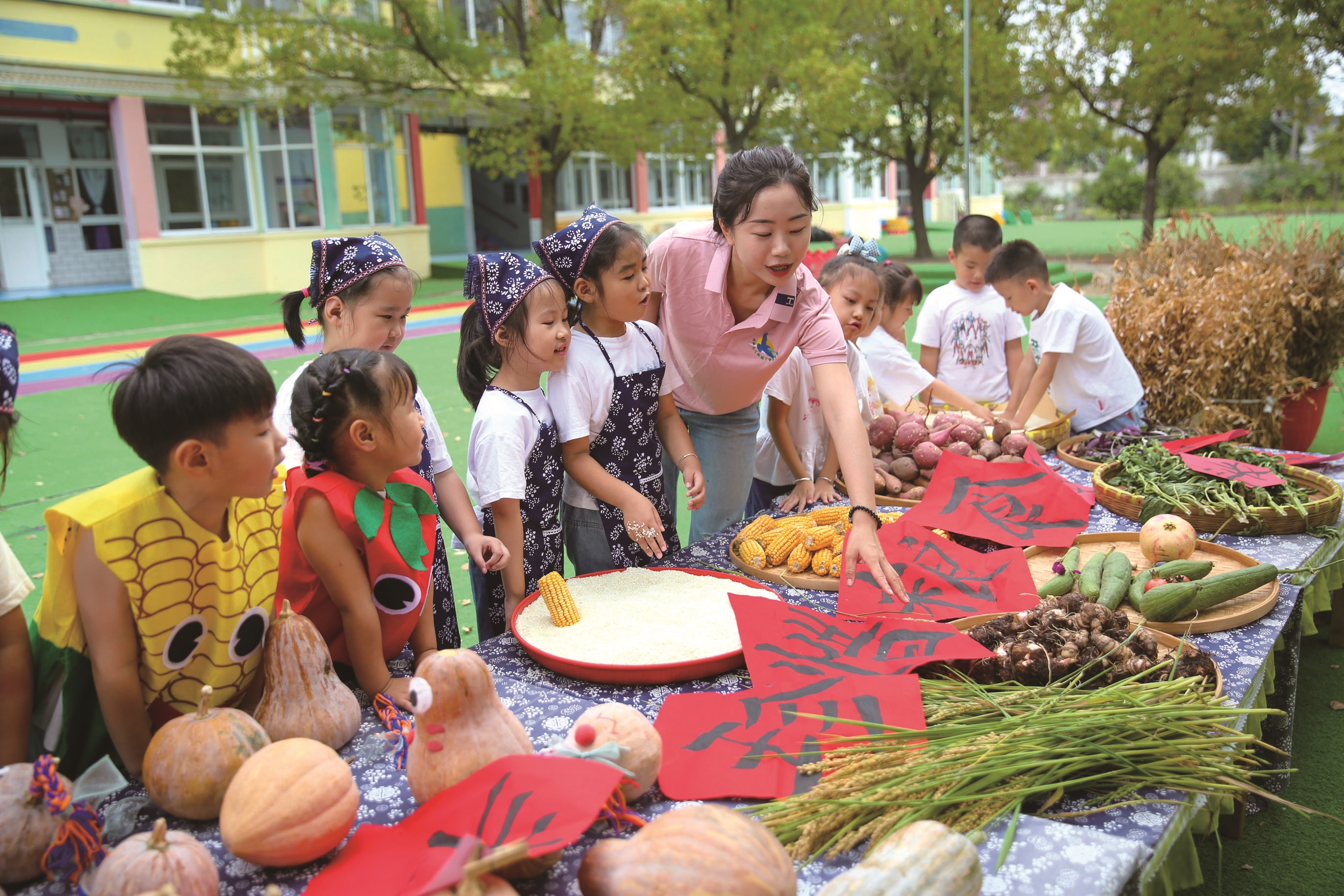 13日,在如皋市丁堰幼儿园内,孩子们在实物展示区学习辨识粮食农作物。为迎接即将到来的10月16日世界粮食日,该幼儿园开展“珍惜粮食 从小做起”主题教育活动,通过实物展示、故事讲述等方式帮助幼儿认识粮食作物,培养节约意识。 CFP供图