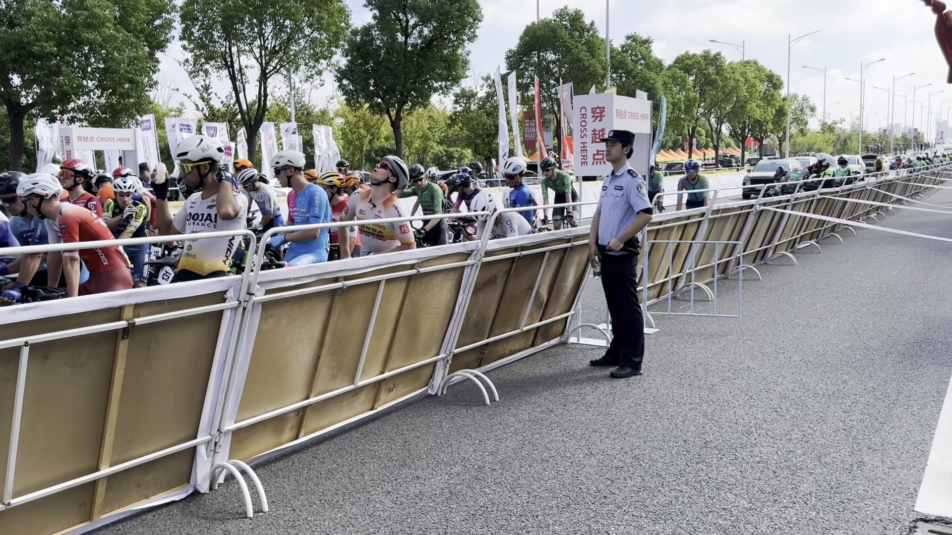 作为赛事起点所在地,汇龙镇派出所提前谋划,围绕钱塘江路(江海南路至民胜南路)等封闭路段,科学部署警力。比赛期间,民辅警于重点路口值守,严格管控无关人车进入警戒区,引导群众有序绕行,并配合做好临时穿越点通行保障,以精准防控筑牢赛事安全防线。