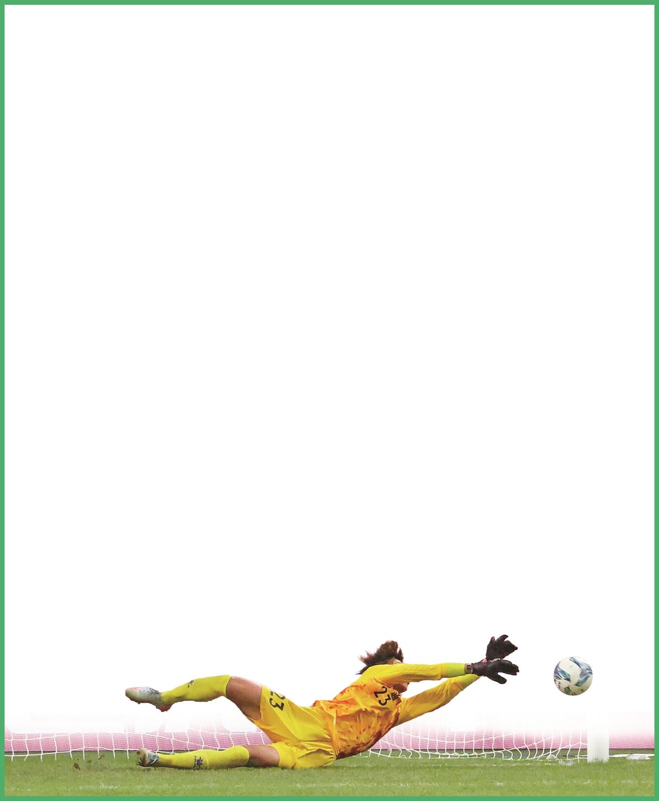 蔡天龙在“苏超”半决赛中扑出对手的点球。 许丛军 摄