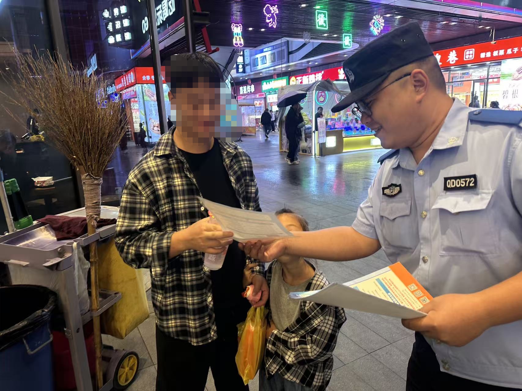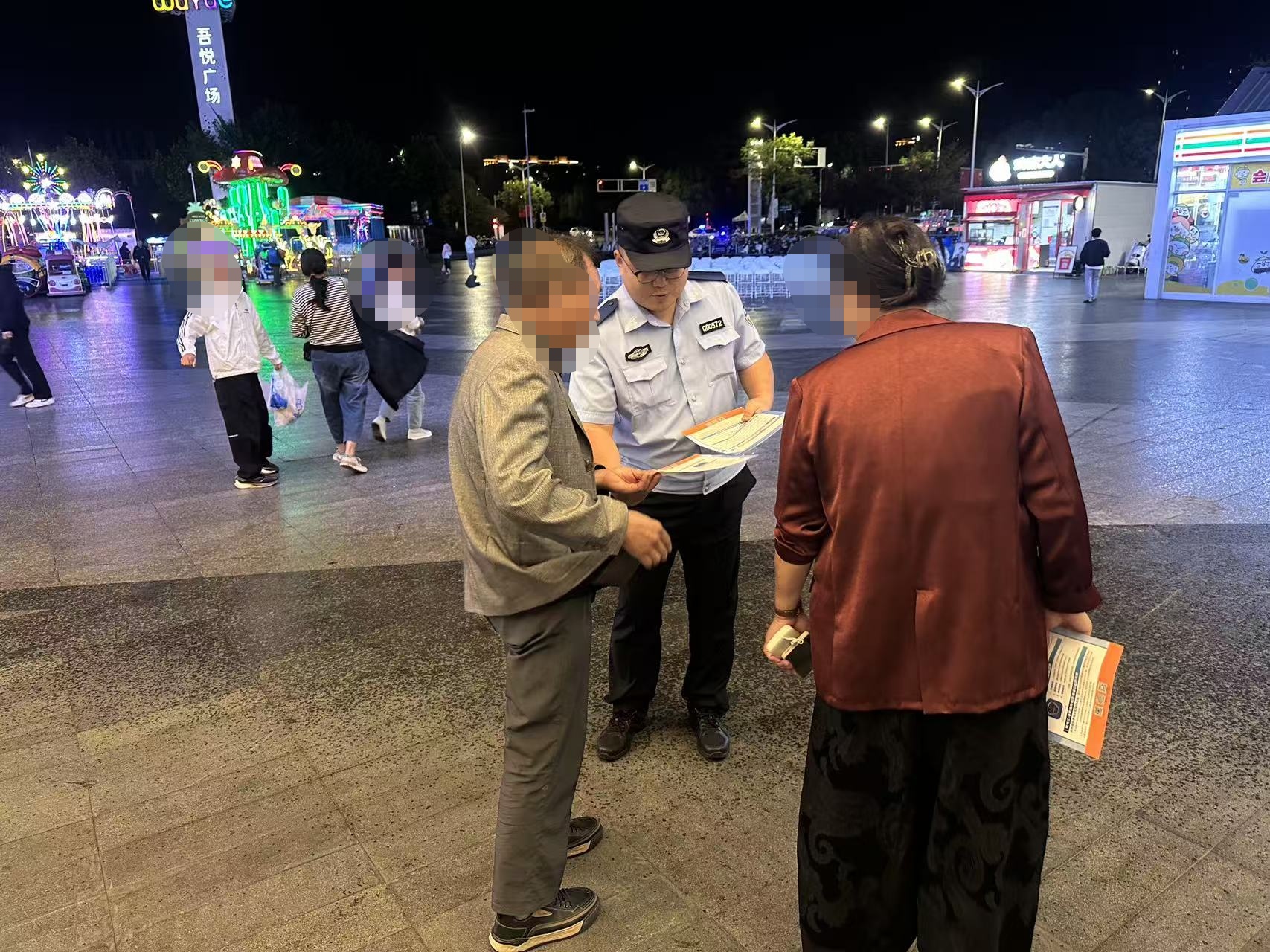 10月19日晚上,启东市公安局汇龙镇派出所反诈小分队深入辖区吾悦广场,在“苏超”比赛转播现场开展反诈宣传活动。
