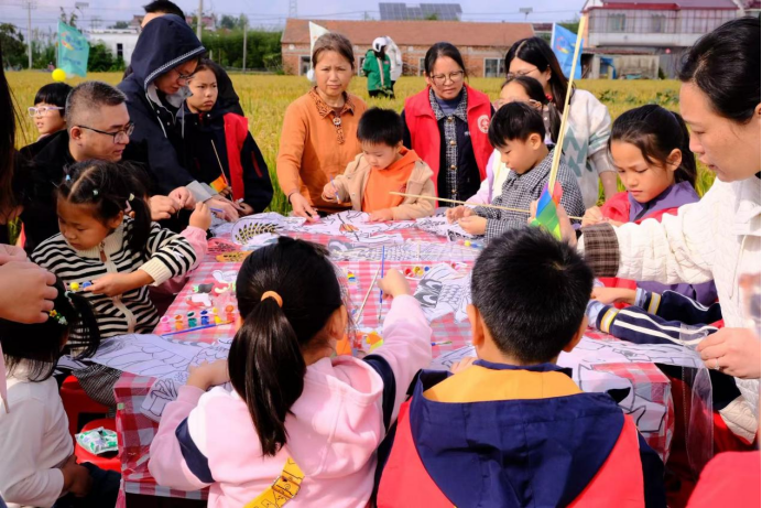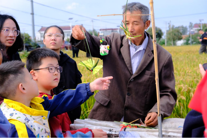 非遗手作区内,棕编老人指尖翻飞,柔韧叶片经纬交错,引得孩子们围坐观摩。“以前只在电视上看过,亲手试试才发现这么有趣!”一名小学生兴奋地说。风筝绘制区同样热闹,家长与孩子共执画笔,将田野秋色与美好祝愿绘上纸鸢。当承载创意与亲情的风筝升空,传统文化也在代际传递中焕发新生。