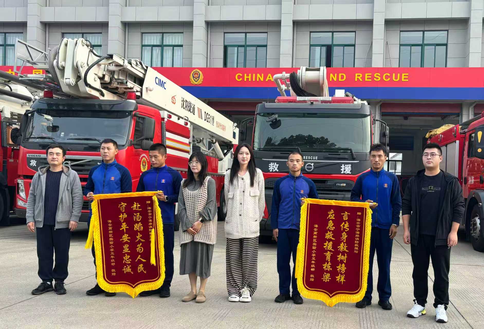 参观体验结束,辅导员老师代表向消防员献上锦旗,致以崇高的敬意。少先队员们也纷纷献上自己亲手准备的小礼物,表达对消防员叔叔的敬意和喜爱。