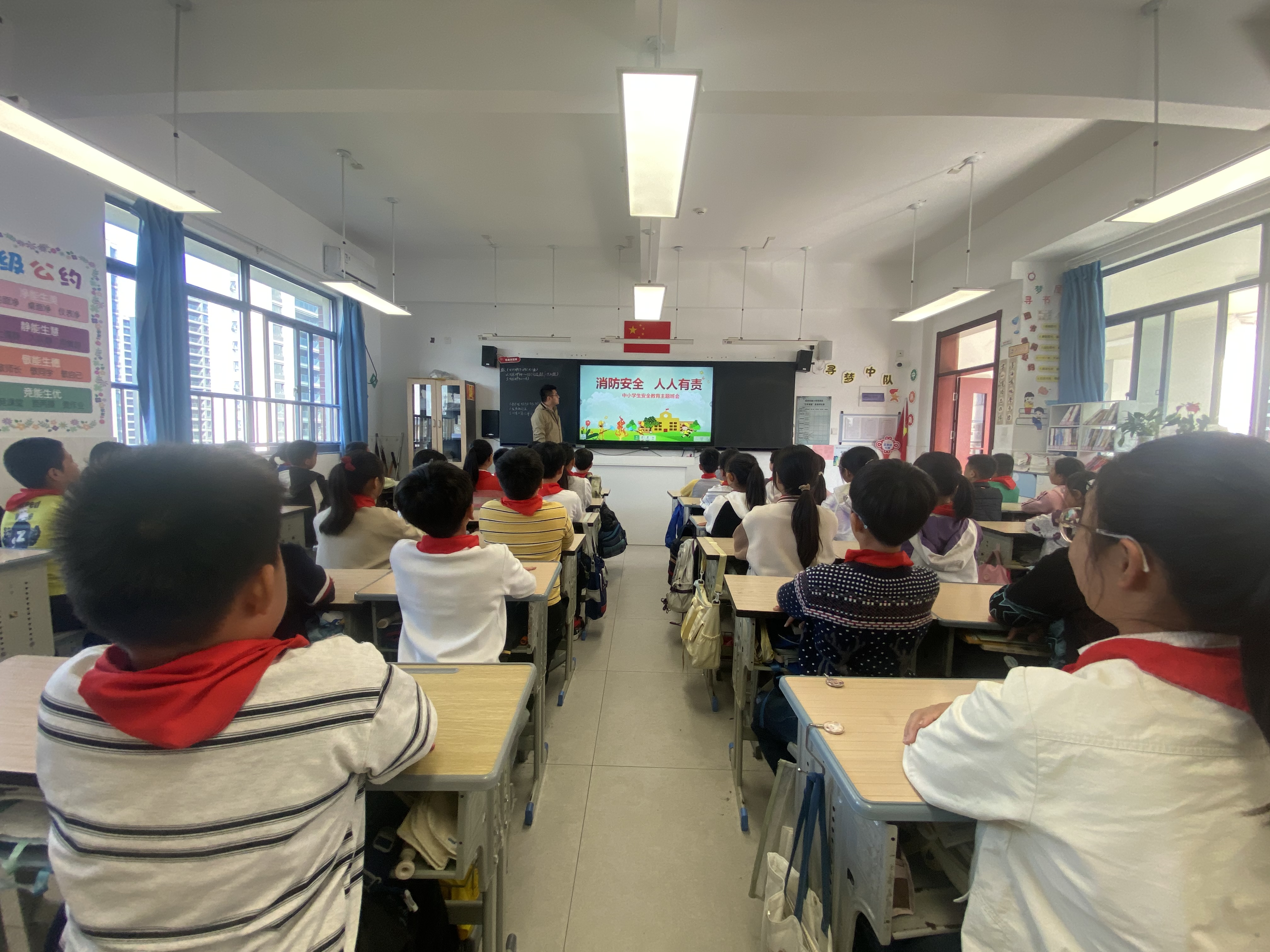 班会课上,辅导员老师开展消防安全主题班会,少先队员们认真聆听,积极参与,让“全民消防,安全至上”的主题深入每位少先队员的心中。