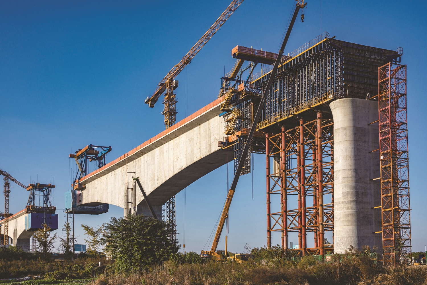 昨天,沪渝蓉高铁通州区段跨G15高速及通吕运河大桥紧张施工中,该工段为节点工程,任务重,施工难度大,工作人员克服困难努力工作,争取早日合龙。 钱伟章摄