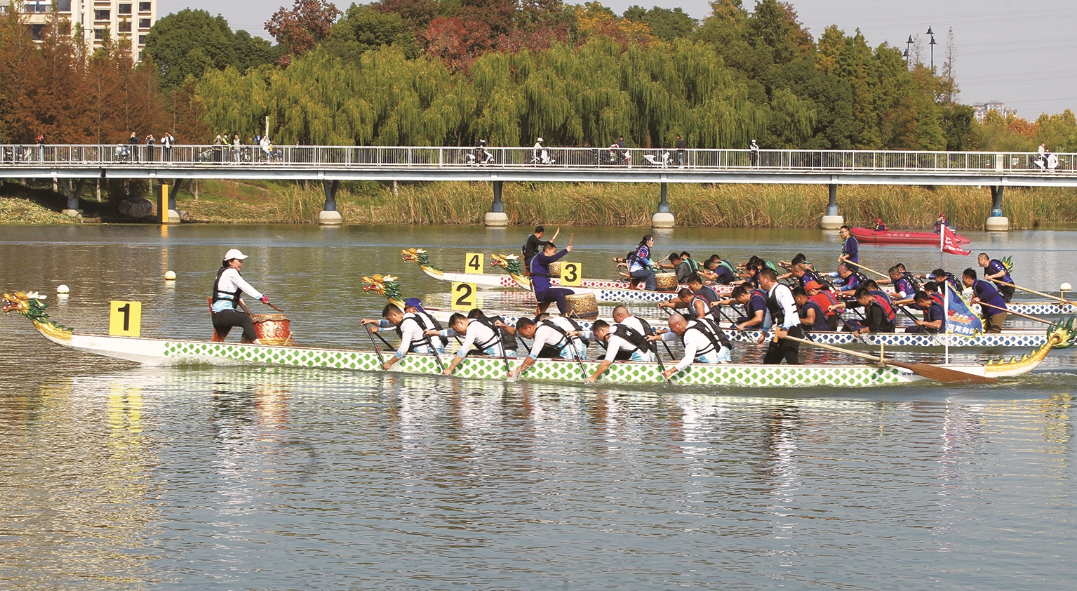 昨天,由南通开发区社会事业局、开发区总工会指导,开发区龙舟运动协会主办的“星湖玥”杯2025苏沪龙舟邀请赛在开发区能达通廊龙舟广场湖面举行。来自上海、常州、苏州、南通等地的12支龙舟队参加了200米和500米两项直道赛。最终,南通复旦江海龙舟队获得了本次赛事的两项冠军。 记者李波