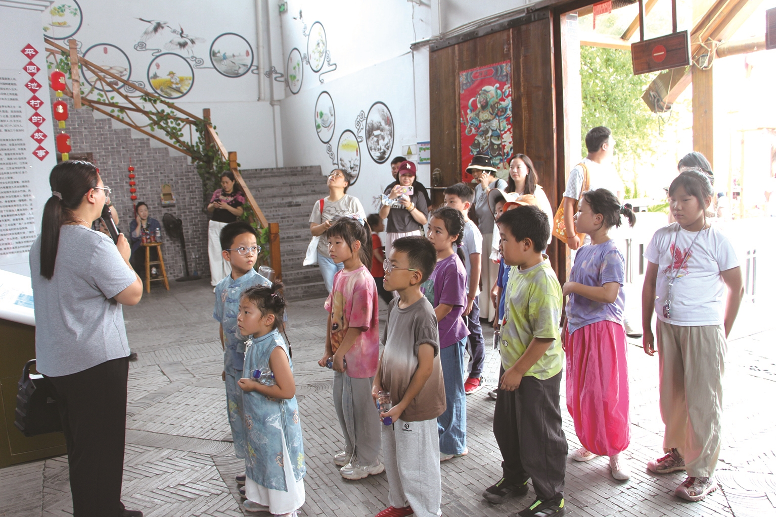 除了亲身体验劳动,孩子们还走进平园池村农耕馆。馆内陈列各式传统农具,从古老的犁耙到精巧的纺车,每一件都承载着岁月痕迹,诉说着农耕文化悠久历史。