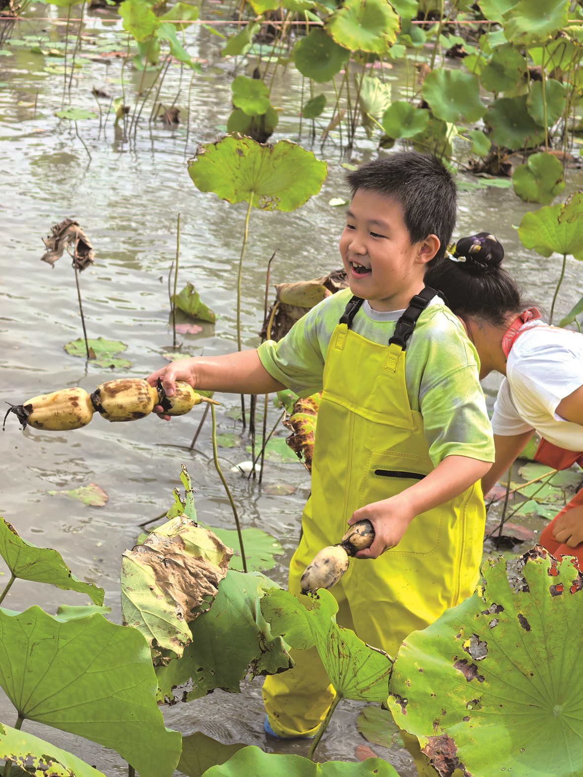 在藕塘里,孩子们面对深埋在淤泥中的莲藕有些手足无措。在老师的耐心指导下,他们逐渐掌握了技巧,小心翼翼地顺着藕节挖掘。当一根根完整的莲藕被挖出时,孩子们的脸上洋溢着自豪的笑容,欢笑声在田野里回荡。红薯地同样热闹非凡,你帮我、我帮你,孩子们互相分享劳动成果,感受丰收喜悦。