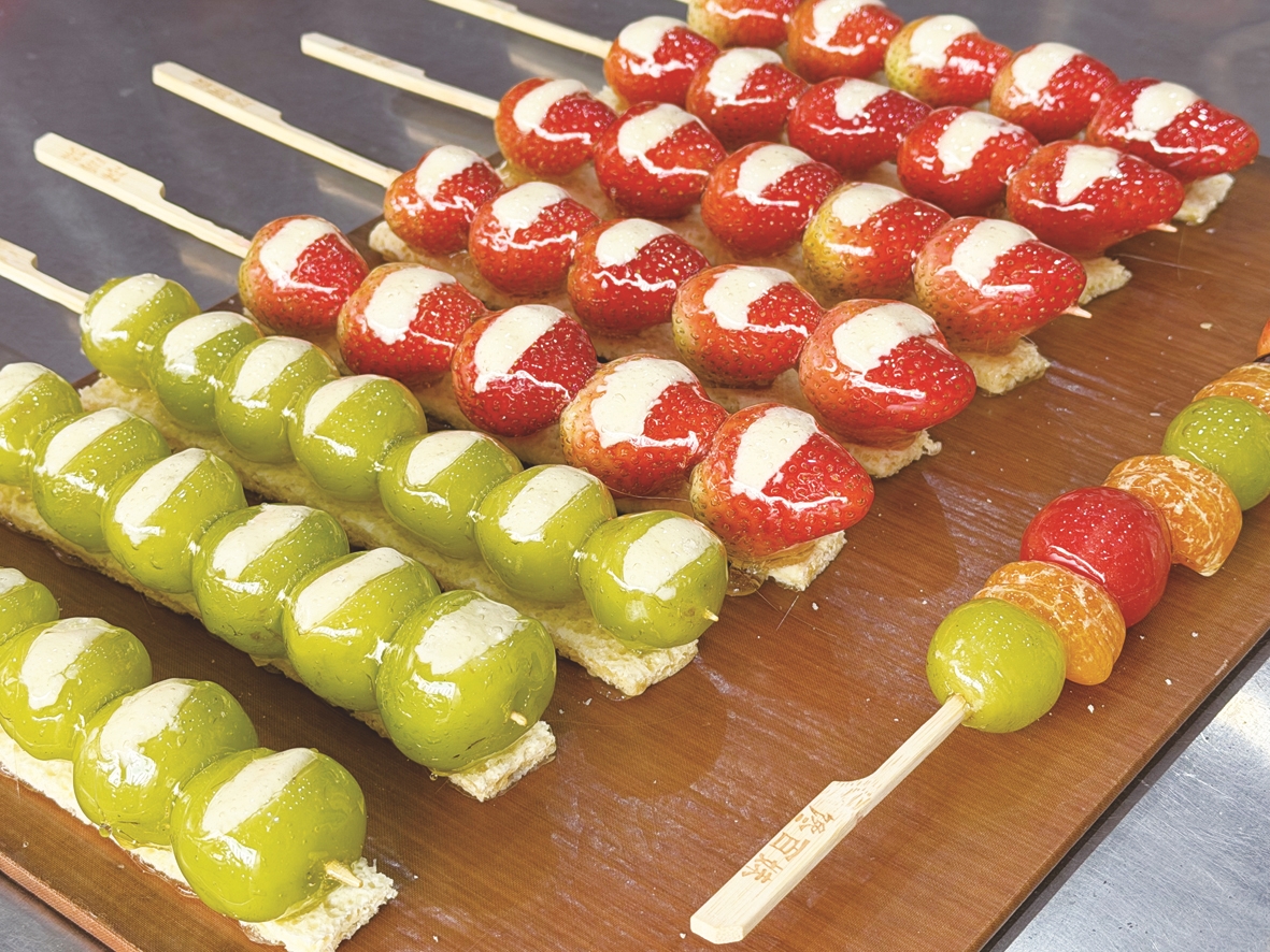 “逛个街,和闺蜜人手一串奶皮子糖葫芦,那种甜甜酸酸兼具奶香的滋味在舌尖漾开,真的很享受!”女生小杨说,这段时间奶皮子糖葫芦成了她和好友的甜蜜新宠。