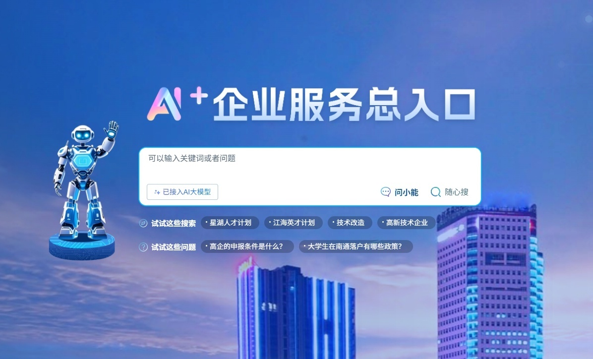 据介绍,该平台聚焦企业“最急需、最刚需、最痛点”问题,此次升级以“1+N”智能服务框架为核心,打造了统一AI助手“小能”,实现“搜问一体”智能引导,更推出高企服务专项智能体“新星”提供专家级辅导,实现从“被动响应”到“主动服务”的模式变革。如今,南通开发区企业通过轻点指尖即可享受政策咨询、诉求响应等即时服务。