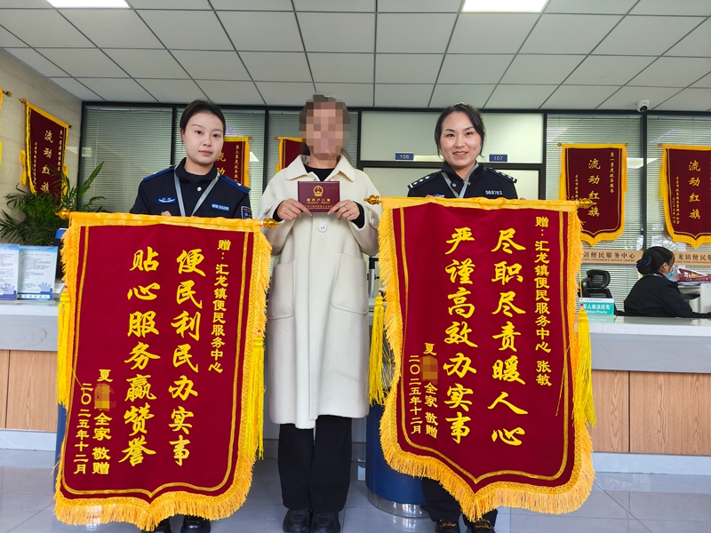 12月4日下午,启东市公安局汇龙镇派出所收到市民夏女士送来的两面锦旗,分别书有“尽职尽责暖人心 严谨高效办实事”“便民利民办实事 贴心服务赢赞誉”,字里行间满是对汇龙镇派出所民辅警贴心服务的感激之情。