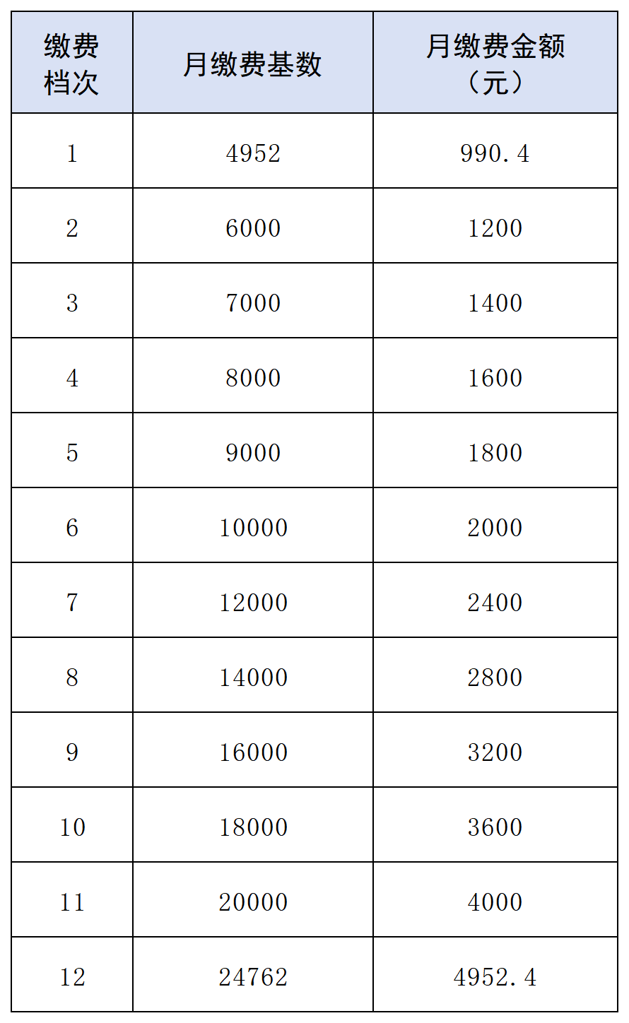 灵活就业人员可自主选择适当的缴费基数,最低档缴费标准为990.4元/月。