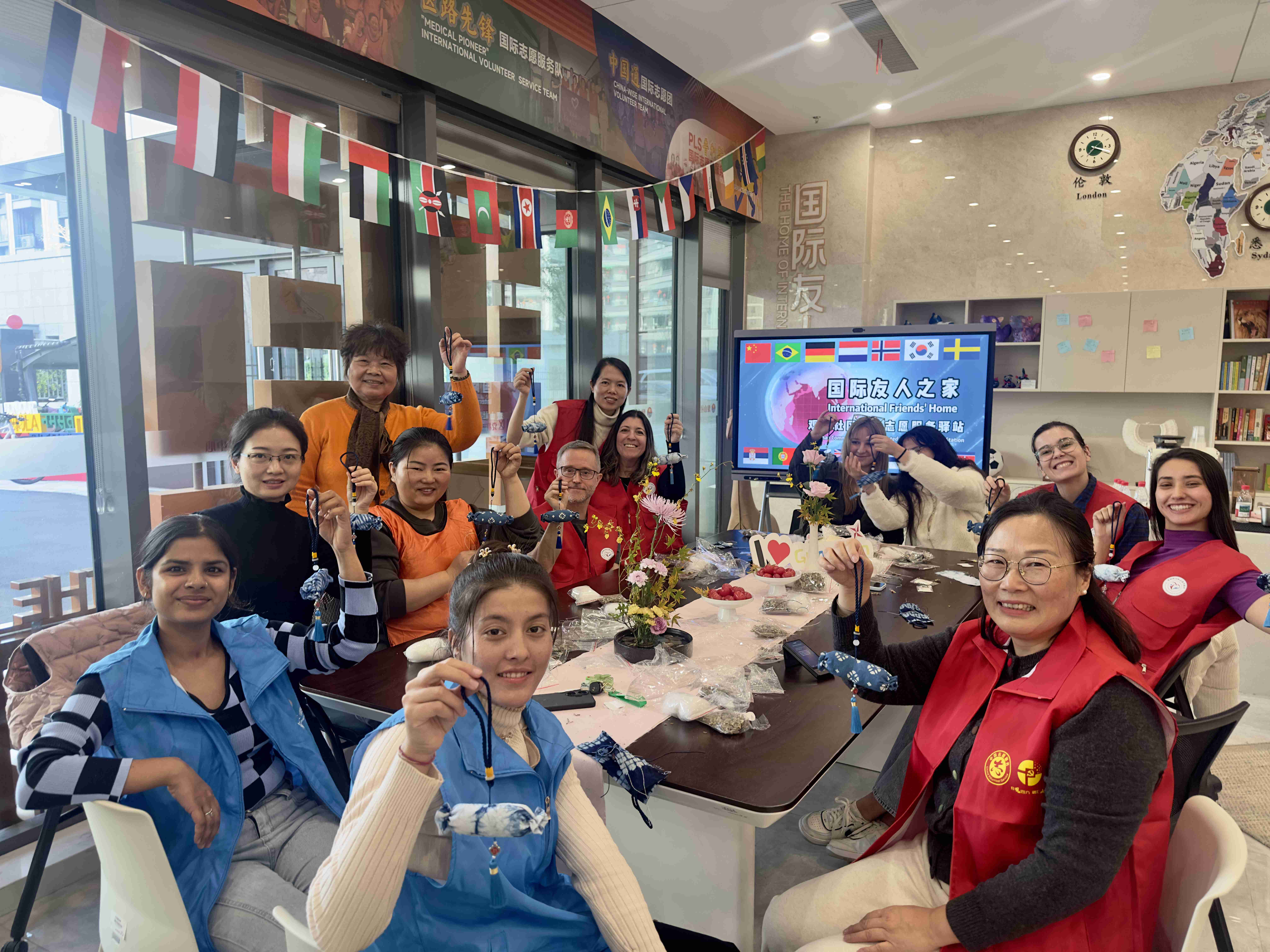 “这里有这么多外国人呢,好热闹!”就在制作香囊活动当天,来咨询业务的居民有感而发。一切的融合始于第一次接触。社区通过线上组建兴趣群聊、线下主动邀约恳谈,将外籍居民喜好与社区丰富活动相结合,迅速拉近邻里距离。首场公益“外教来了”体验课、中华民俗文化体验活动、国际节日庆祝活动……在“国际友人之家”,一场活动、一杯咖啡、一次随性的交流,便让初来乍到的忐忑化为找到“组织”的归属感,完成了从“你好”到“我们”的认同转变。