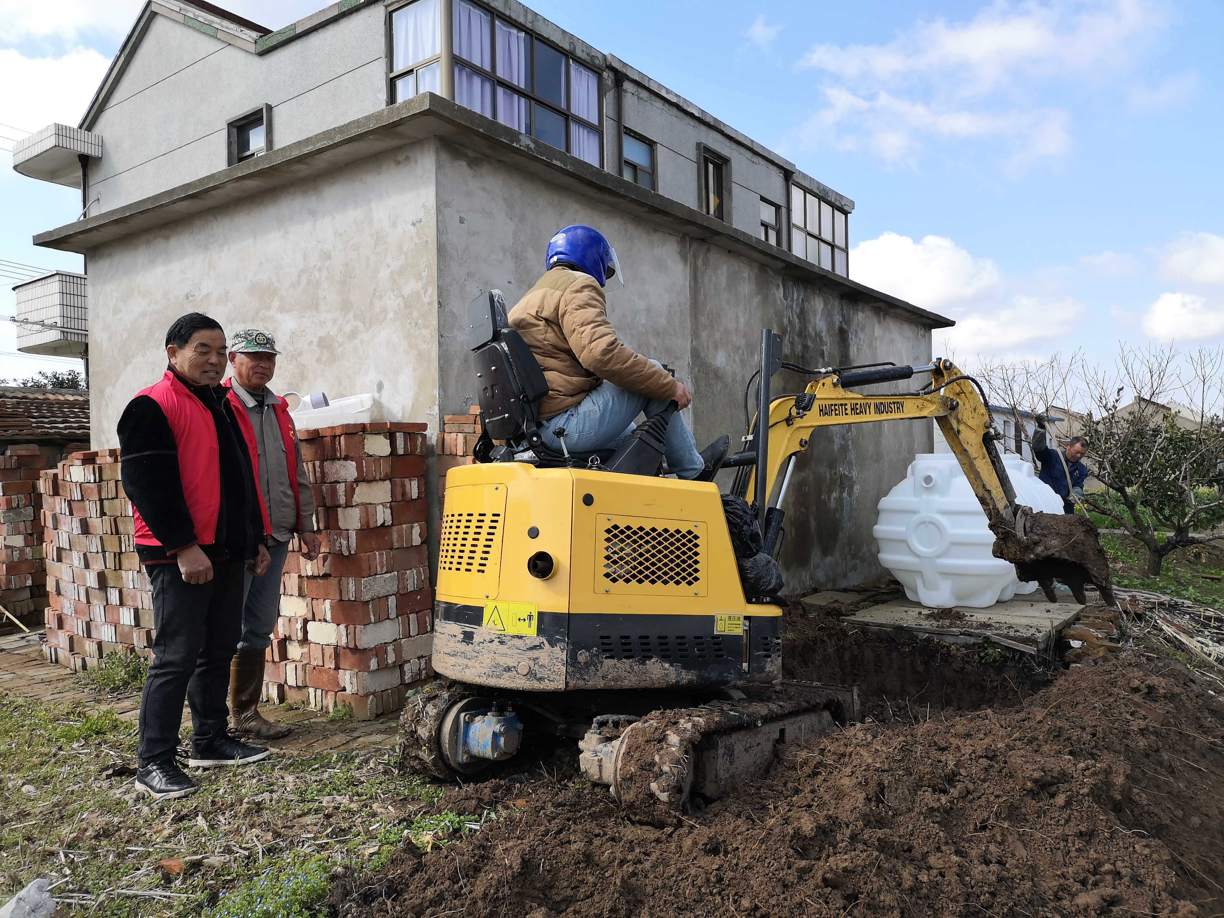 到2022年8月中旬,还有六七个农户因这样那样的问题未完成改厕。村里便与施工人员、农户代表三方商议,制定“一户一方案”。于是,4组黄家通过先破路安放化粪池,再覆路确保道路畅通的方式完成了改厕;7组朱家通过专门定制三格式化粪池找到了厕所粪便出路;11组陆奶奶家,则专门在马桶边安装不锈钢落地扶手,解决了上厕所无力起身的难题……