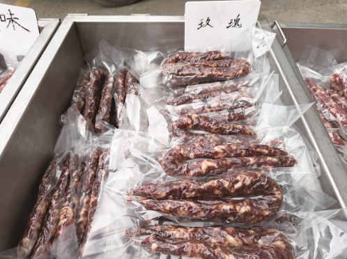 当记者表明了来意,花晶金笑着说:“快过年了,这些‘网红香肠’确实卖得太火,我以为你们也是来采购的呢!”