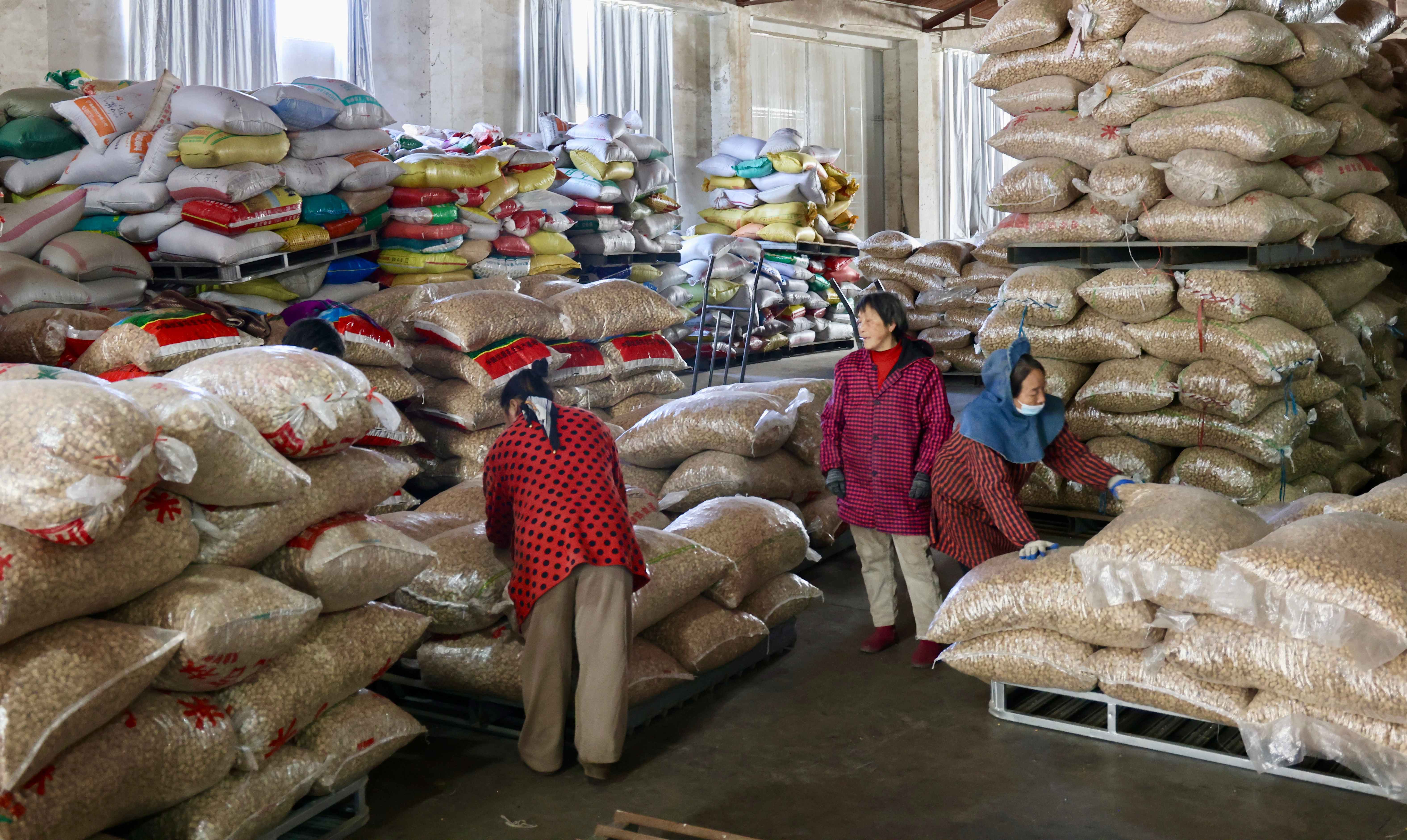 合作社起步初期,自主种植毛豆、赤豆、蚕豆、花生等杂粮作物,再通过筛选、烘干、包装等标准化加工流程,销往长三角地区其他城市。凭借良好的信誉和稳定的产品品质,合作社拓展了一批长期合作的客户。随着市场需求的扩大,合作社发现单靠自有基地的产量难以满足订单供应需求,于是果断从单打独斗模式转向“合作社+基地+农户”的经营模式。在这一模式下,合作社充分发挥自身优势,按照农时规律,向有土地且愿意种植的村民统一供应优质种子,并定期派技术员上门技术指导。待农作物收获后,再以略高于市场的价格保底收购,让村民们切实感受到种地有盼头、挣钱有保障。