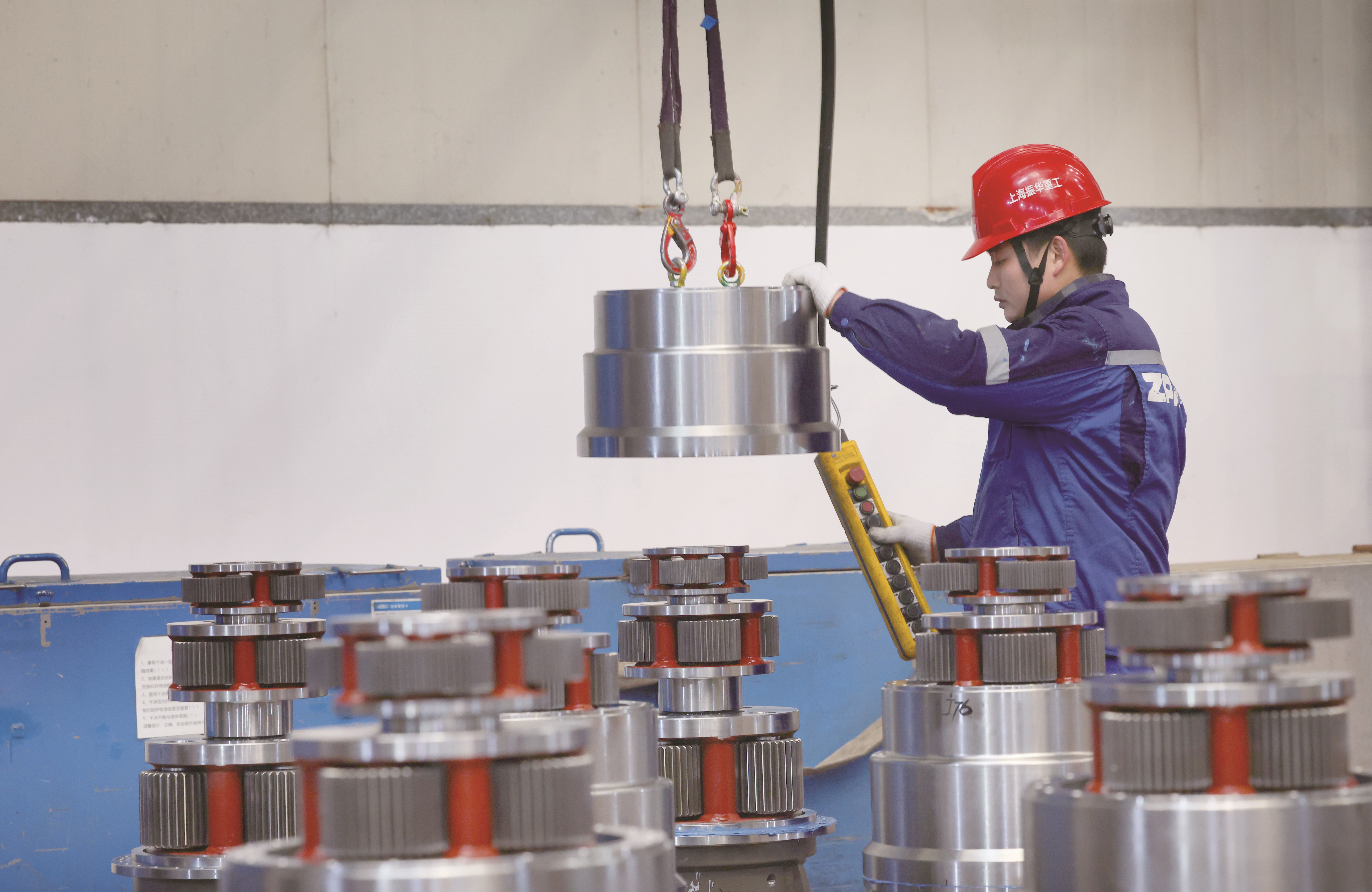 昨天,在上海振华重工集团(南通)传动机械有限公司车间,工人正忙着加工国内外订单产品。