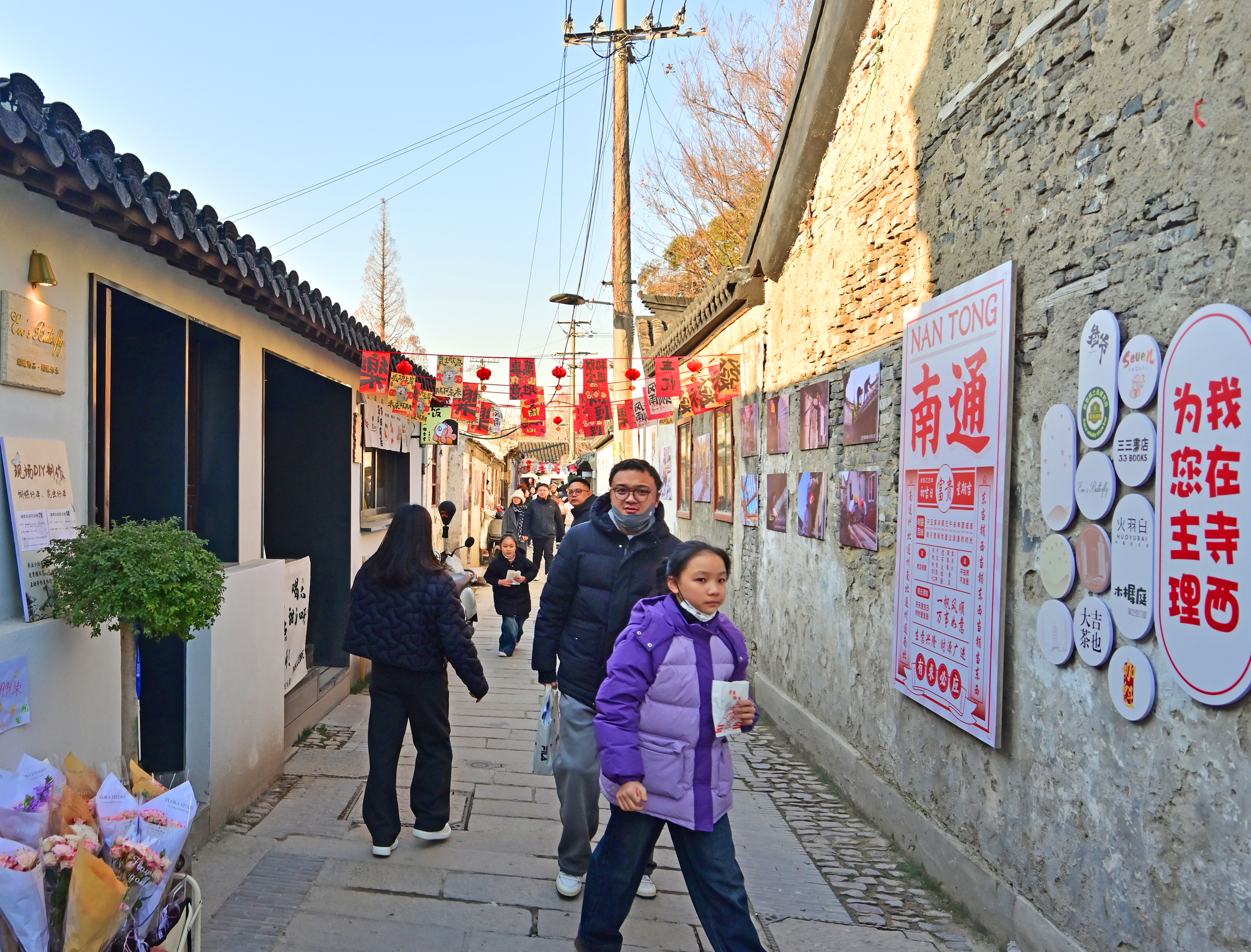 冬日暖阳下,孩童们踏巷追逐打闹,市民们品味着写在斑驳墙面上的南通文化,不少摄影爱好者用手中的相机不断定格独有的寺街风情及原汁原味的老街风貌,留下了一个个历史文化街巷院落与冬日阳光交相辉映的美好画面,看一街喧闹,品一处风情,如今的寺街俨然成了一个活着的文化街区。