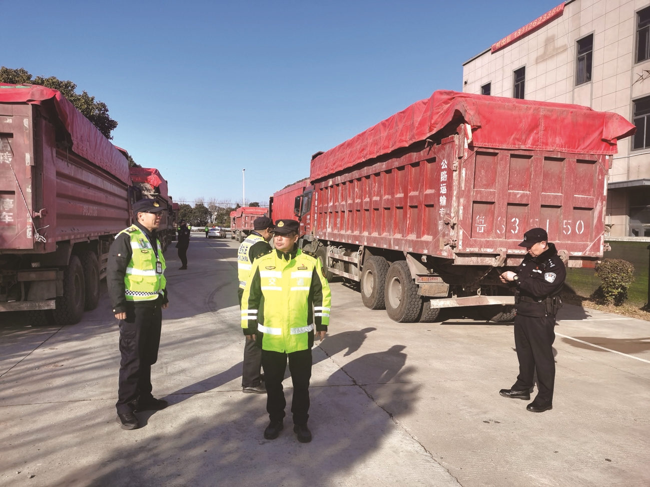 行动前,第七大队与各联动单位充分沟通协商,明确职责分工:海门交警悦来中队、海门城区交警中队负责路面秩序维护、嫌疑车辆拦截引导,重点查处“百吨王”渣土车违法超限行为;南通交通执法支队海门大队、海门城管协同参与其他违法行为的调查核实;宁通支队第七大队聚焦“道路运输经营者使用卫星定位装置不能保持在线的运输车辆从事经营活动”“擅自改装”两类违法行为,针对“百吨王”渣土车违法特征开展专项查处。