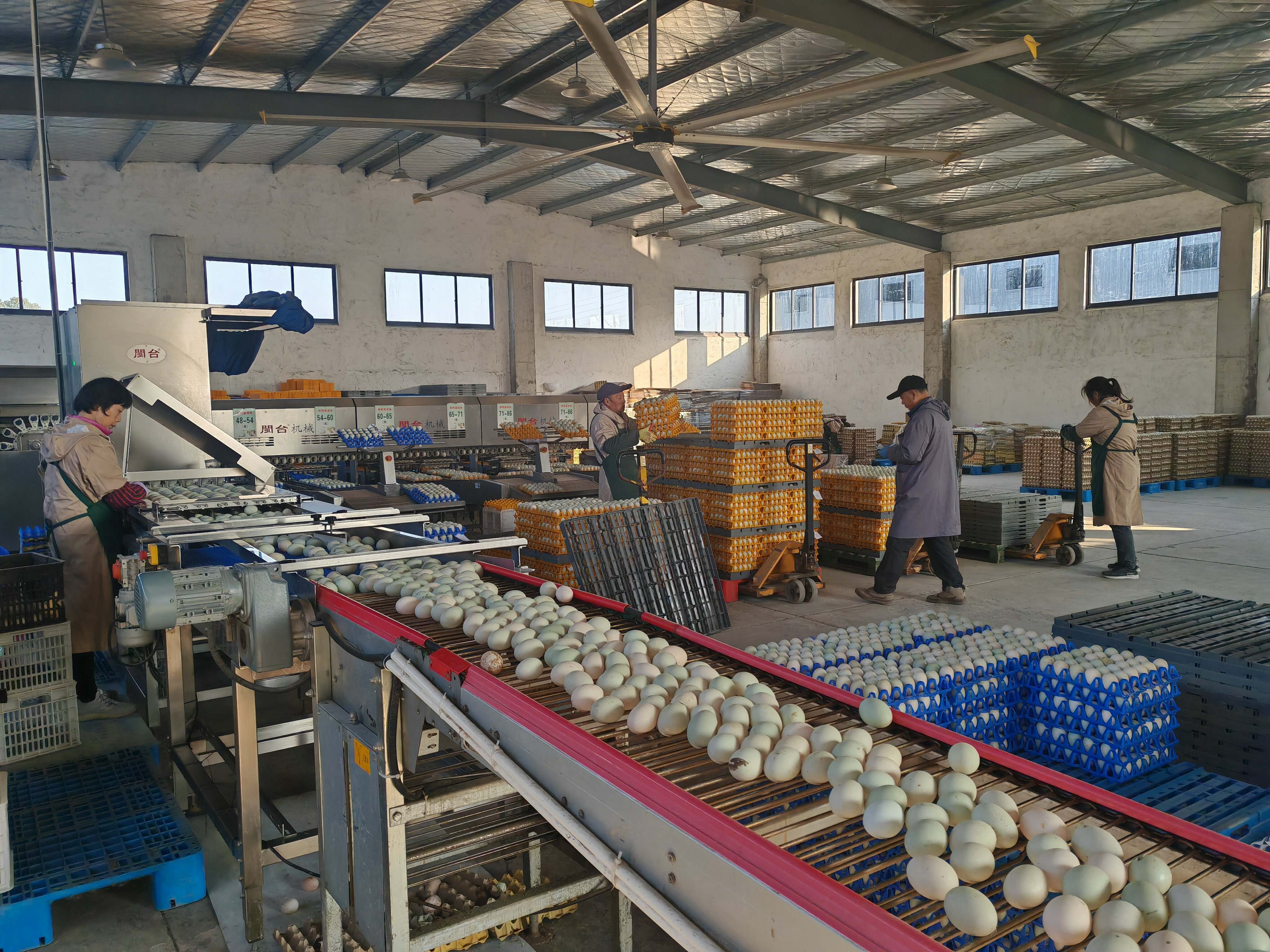 元旦前,记者走进江苏瑞辰农业发展有限公司蛋品仓库,一只只鸭蛋通过中央集蛋线平稳输送过来。“从早上8点到下午5点基本不停,一天的产量为20多万只。”公司总经理陈健说,经过多年探索,他们成功实现蛋鸭智能笼养。