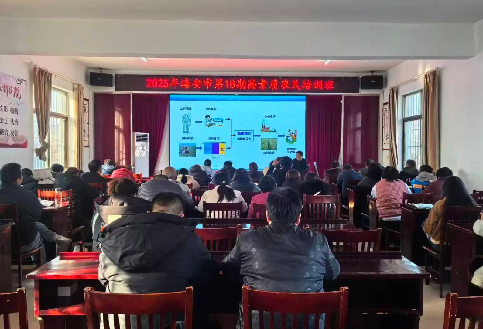 “这块麦田的土壤氮磷钾含量偏低,要补施有机肥!”近日,由海安市农业农村局主办、白甸镇农社办承办的海安市第18期高素质农民培训班在白甸村开班,原本该“猫冬”的农户们,化身勤奋学子,让冬闲时光变成了充实的“学忙”时刻。