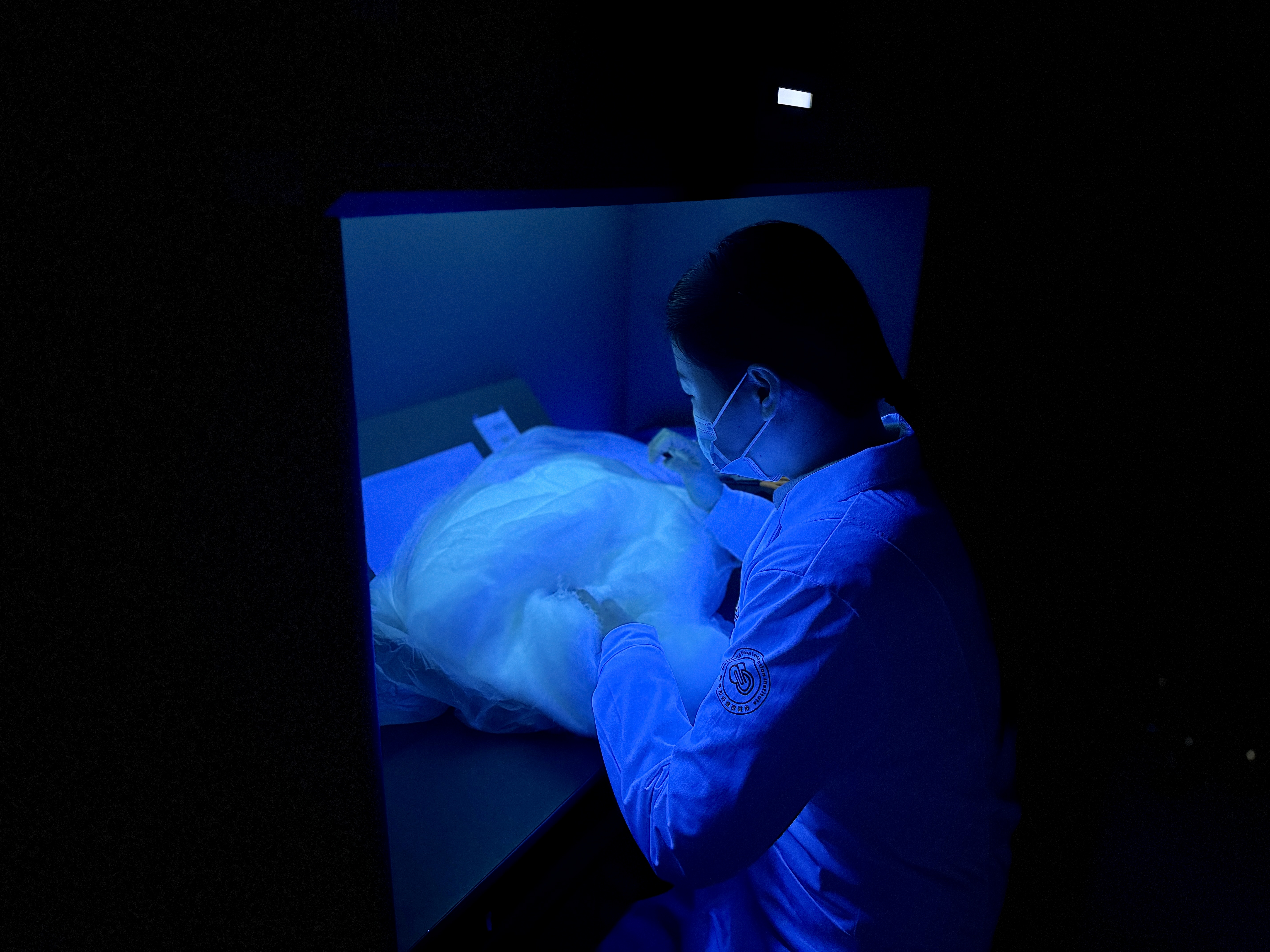 羽绒被里填充的是不是真的羽绒?蚕丝被里的蚕丝有没有使用荧光增白剂?面料的强力牢不牢、耐摩擦色牢度好不好?2025年,南通在市纤检所以及海门、通州两大家纺市场设置三个快检服务工作站,以免费快检服务回应消费者对于家纺产品质量的疑问。免费快检项目包括标志标识、荧光增白等非破坏性试验项目,以及纤维成分初步定性,断裂强力、密度、耐摩擦色牢度,填充物品质等破坏性试验项目。