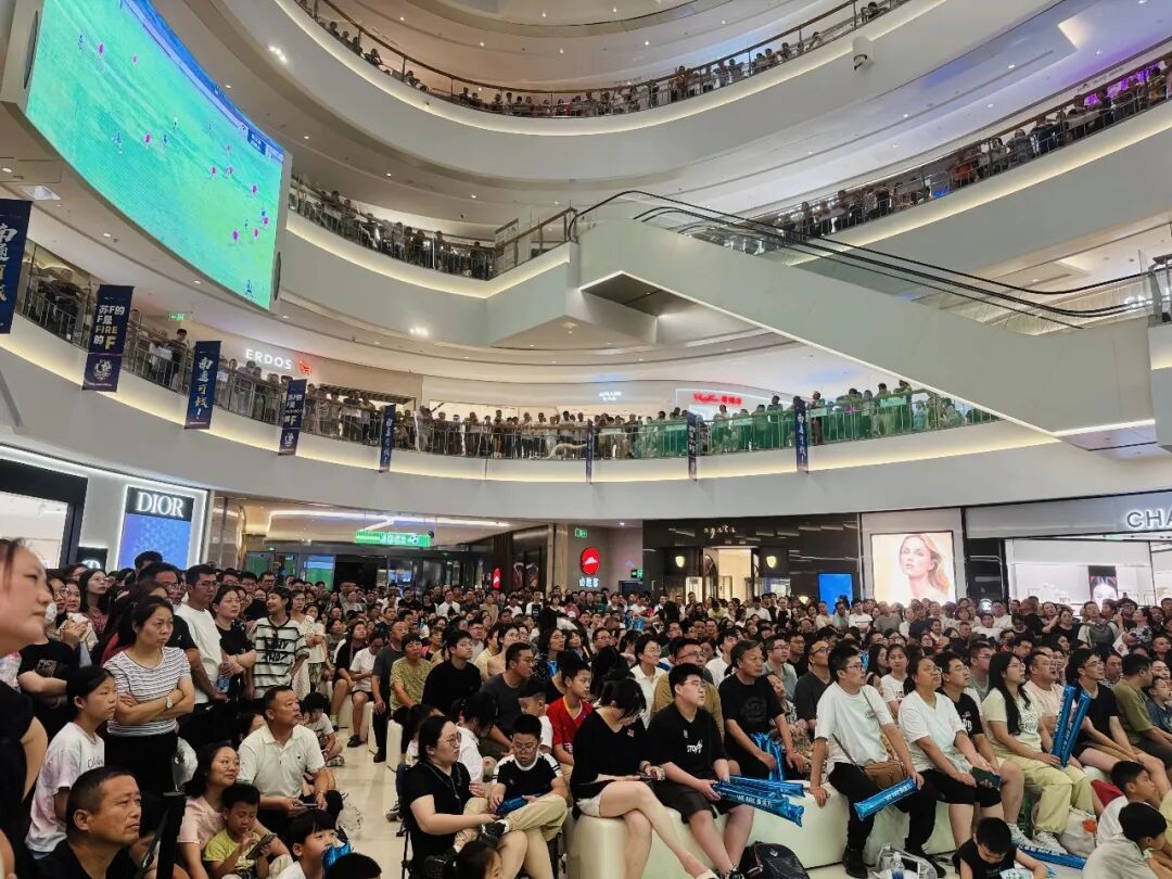 永旺梦乐城的第二现场,凭票根就能兑换餐饮优惠券,观赛、用餐、购物的一站式体验,连平时不看球的爱人都被现场氛围感染。遍布全城的观赛点更让外卖小哥、商场店员、退休老人都加入了加油队伍。这种全民同频的浪潮是以往任何赛事都难以企及的。