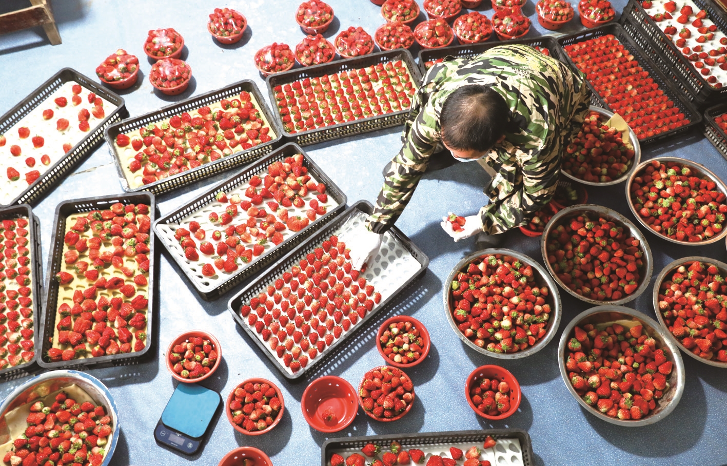 昨天,通州区西亭镇同乐村草莓种植专业户葛春莲的草莓采摘园里,村民正细致地将一颗颗色泽鲜亮、果香浓郁的草莓分拣装盘,准备发往上海、南京、连云港等地市场。近年来,当地大力发展草莓特色种植,打造集采摘、加工、销售于一体的产业链,带动了村民就业增收。通讯员宋协培