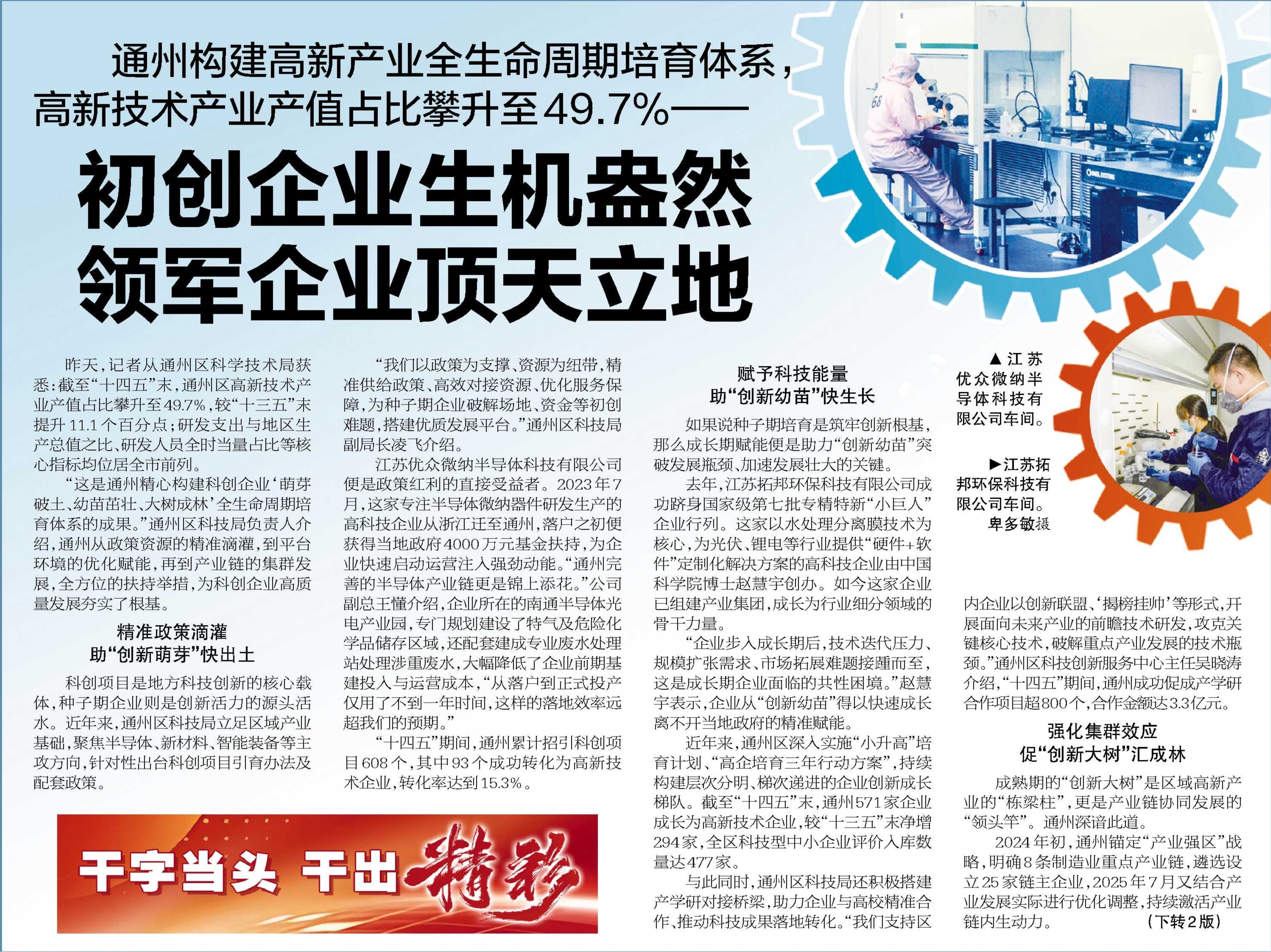 2024年初,通州锚定“产业强区”战略,明确8条制造业重点产业链,遴选设立25家链主企业,2025年7月又结合产业发展实际进行优化调整,持续激活产业链内生动力。 (下转2版)