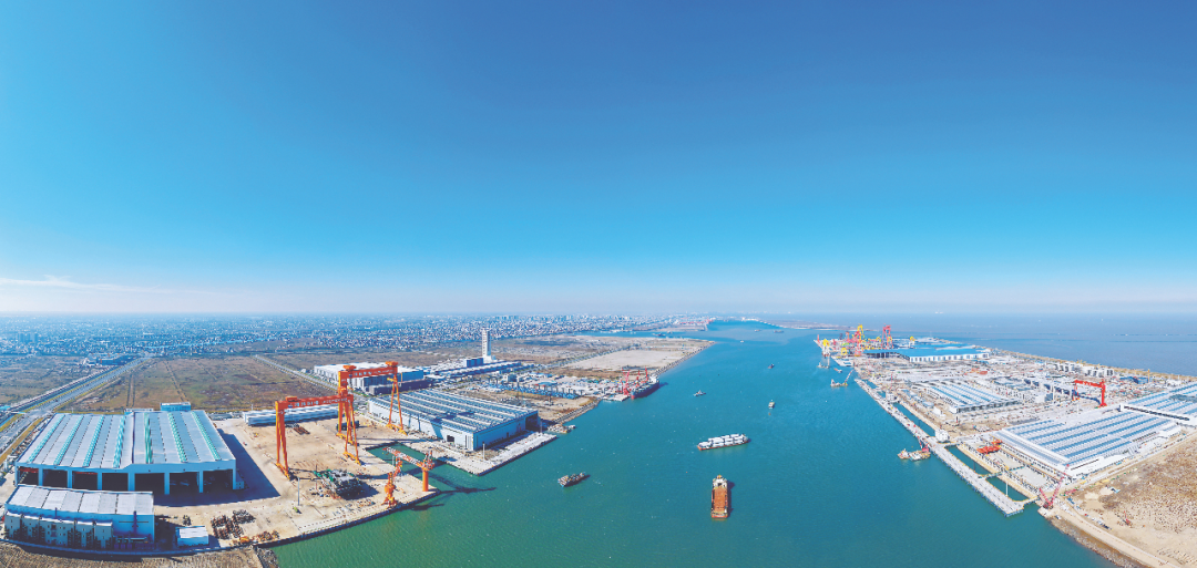 港区基础设施建设持续提速,新建12#、13#泊位施工现场,海上打桩和陆地施工正同步推进。目前,已形成规模化泊位群——7个10万吨级泊位、8个5万吨级泊位、2个7万吨级泊位和1座8万吨级舾装码头获得港口岸线批复。作为“江海联运”关键一环的内河转运区14个千吨级码头全部投用。吕四港经济开发区正向着“三千一百”发展目标全速奋进。