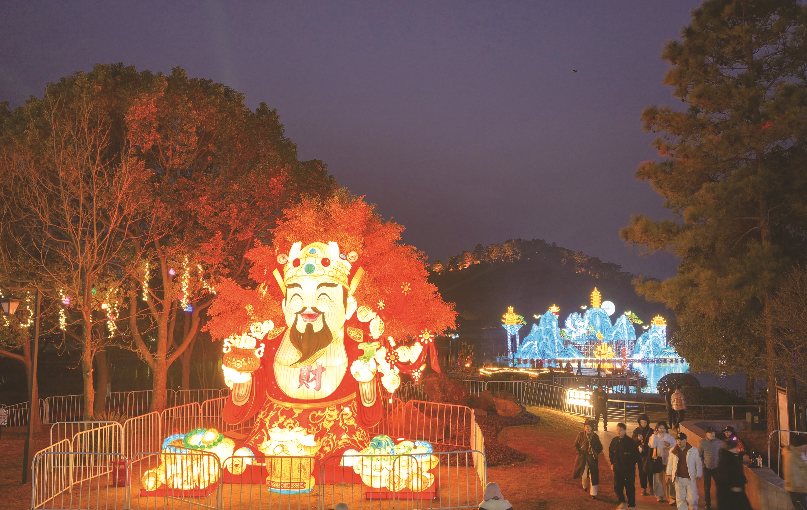昨晚,为期49天的南通狼山第二届新春灯会正式亮灯,为市民游客带来一场视觉与文化的双重盛宴。本次灯会共有20组大型灯组,设三大主题展区,打造沉浸式观灯体验,活动游线较去年增长80%。灯会现场还有打铁花、舞龙等表演,游客在赏灯的同时可以感受非遗民俗文化的魅力。 记者 许丛军摄