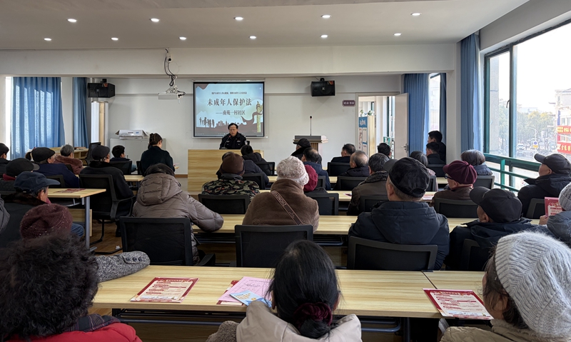 2月4日下午,启东市公安局汇龙镇派出所深入启东市南城区街道南苑一村社区开展未成年人保护法专题讲座。讲座中,民警结合未成年人身心特点,以通俗易懂的语言解读《中华人民共和国未成年人保护法》“六大保护”核心体系,通过典型案例剖析校园欺凌、网络沉迷、隐私保护等热点问题,重点讲解自我保护技巧与求助途径。现场还设置互动问答环节,针对家长关心的监护责任、未成年人权益维护等问题逐一解答,引导青少年树立法治意识,提醒家长履行监护职责。此次活动发放宣传资料60余份,有效筑牢家校社协同保护防线,为未成年人健康成长营造法治环境。