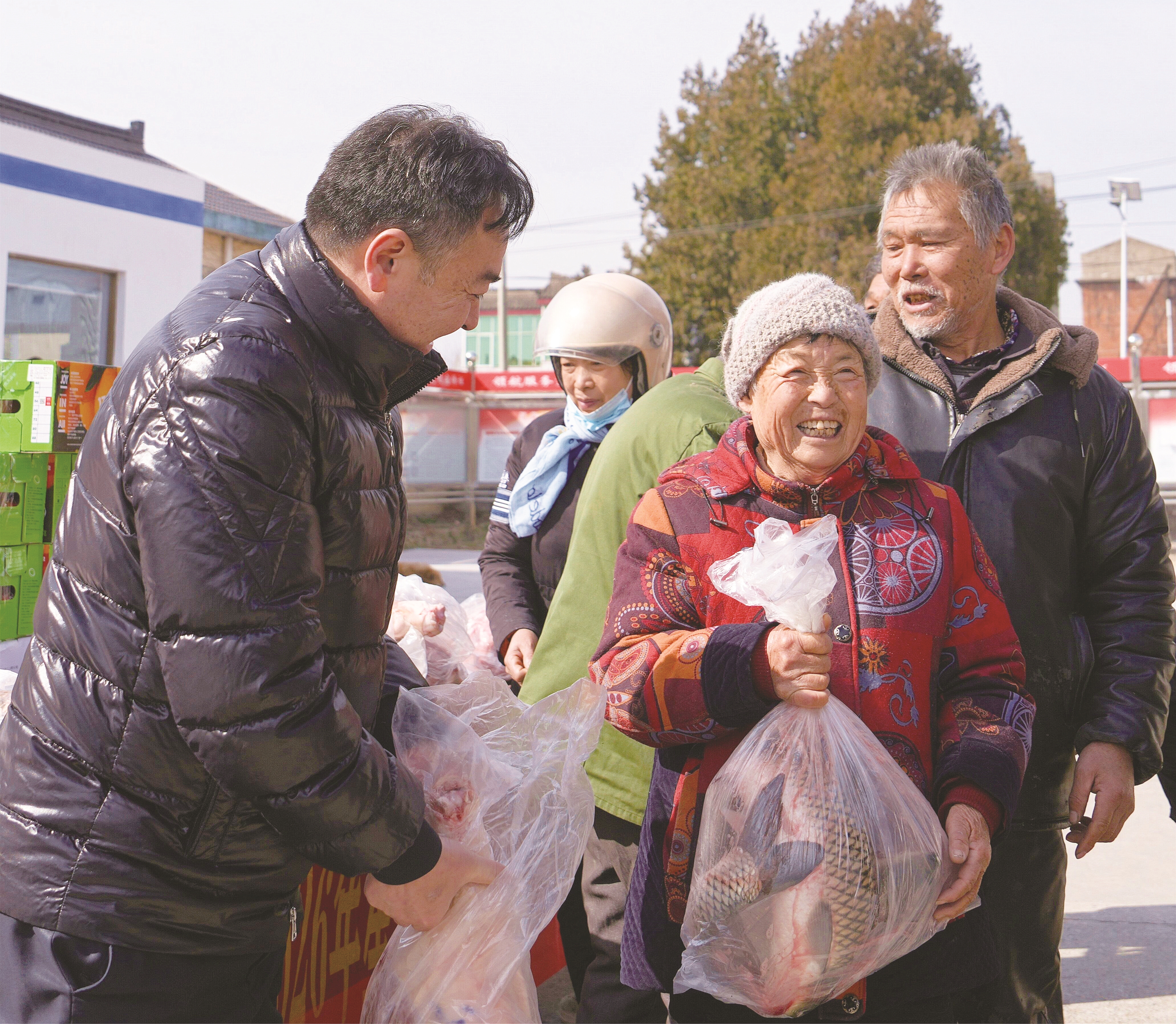昨天,海安市墩头镇吉庆村组织开展“节前慰问送温暖”活动,爱心人士为当地困难群众送上春节慰问品。