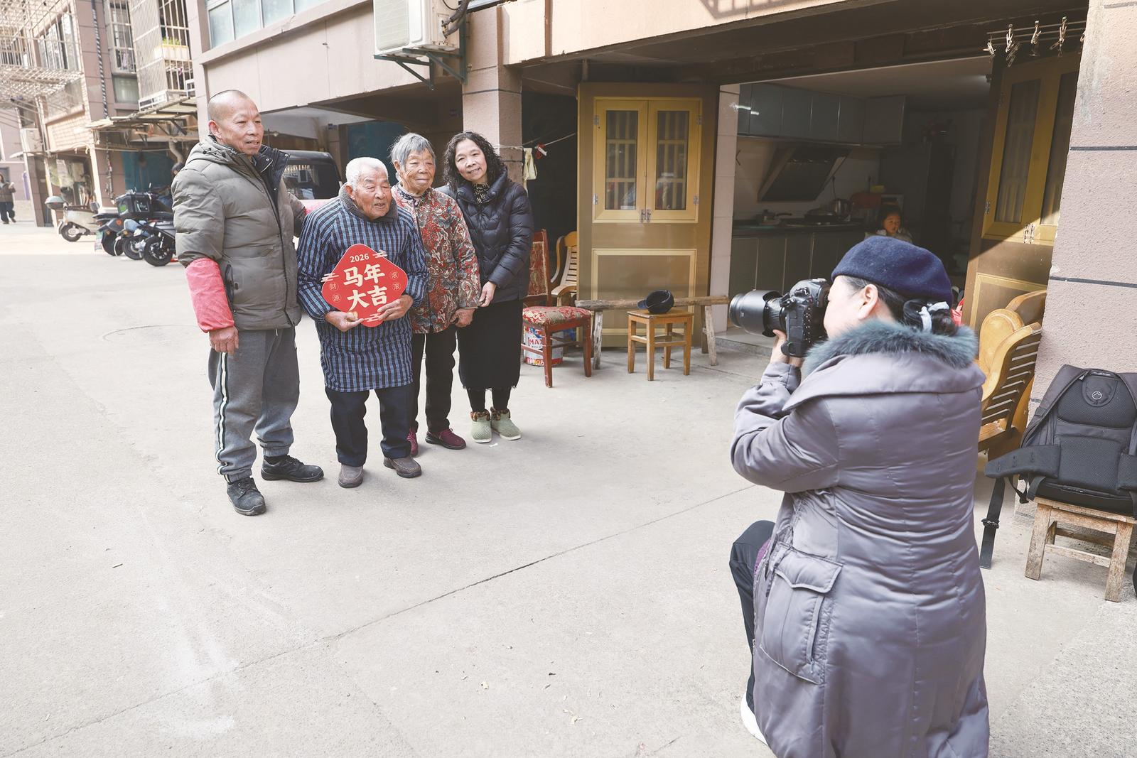 新春将至,昨天,南通开发区摄协联合圆梦慈善连心社开展“新春走基层 摄影惠民行”活动。摄影家们和慈善志愿者带上慰问品,为南通市劳模、参战老兵等免费拍摄个人肖像与合影。 钱咸华摄
