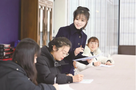 “你好,请问历史展区怎么走?”“南通博物苑赠送的新春文创好礼是在这里领取吗?”“故宫博物院的如意展怎么购票?”……工作间隙,不时有游客前来咨询。面对各类问题,陆苒苒耐心倾听、细致解答,用专业与温情为游客扫清游览障碍。(记者杨镇潇)