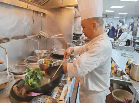 本网讯 “这炒青菜看似不起眼,但火候、用料等大有讲究!锅烧至冒烟时倒油,油温六成热时再下菜,烹饪时间一到两分钟。”昨天下午,正在忙碌年夜饭的南通大饭店厨师长邬栋清,一边掌锅颠勺一边说。