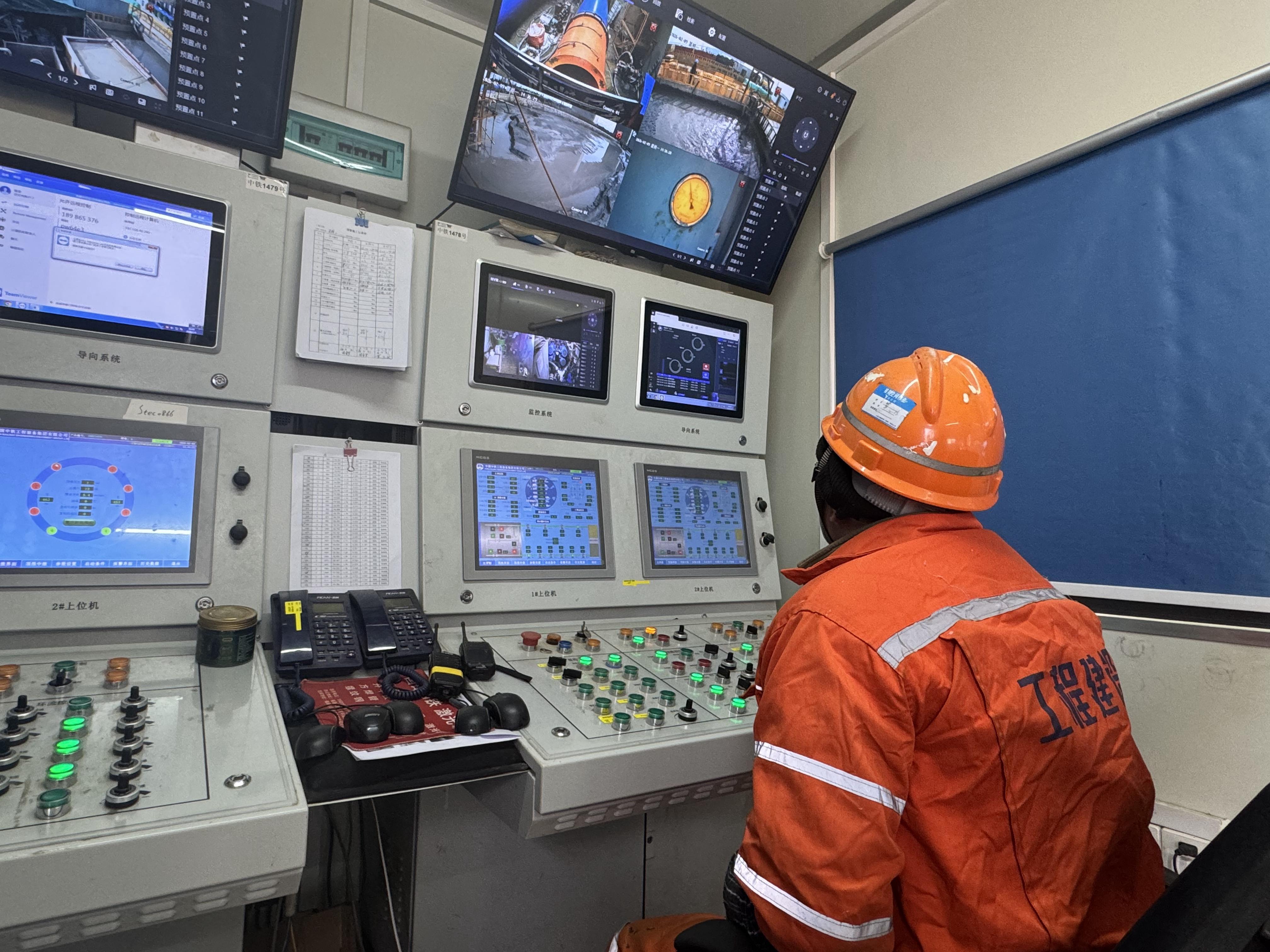 地面监控室内,两台控制台并排放置,屏幕上实时显示顶管机的行进距离、推进速度、油压、顶管机姿态等,这里是指挥中枢,也是“远程驾驶室”。56岁的操作工董正林坐姿笔直,目光在屏幕和按键之间来回移动。偶尔,他会轻触按钮,对顶管机进行纠偏。座位右侧,放着两支打开的滴眼液。“盯久了眼睛干,滴一下舒服点。”他说话时没转头,视线仍落在屏幕上。
