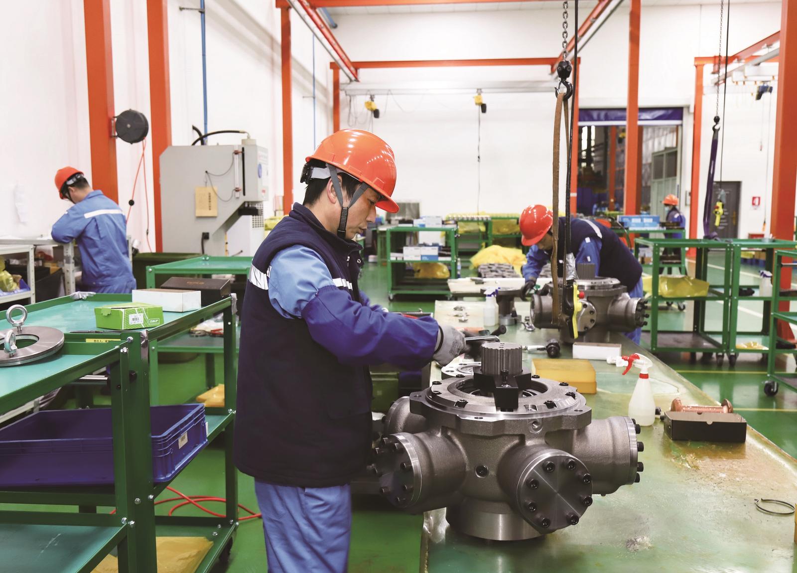 2月24日,位于港闸经济开发区的江苏政田重工股份有限公司,工人正在车间装配产品。作为全球船舶配套设备制造领域的领军企业,面对2026年饱满的订单量,政田重工提前谋划、科学统筹,制定春节期间连续生产专项方案,通过精准调配人力、设备与物料资源,实现各环节高效协同。 记者 黄哲摄