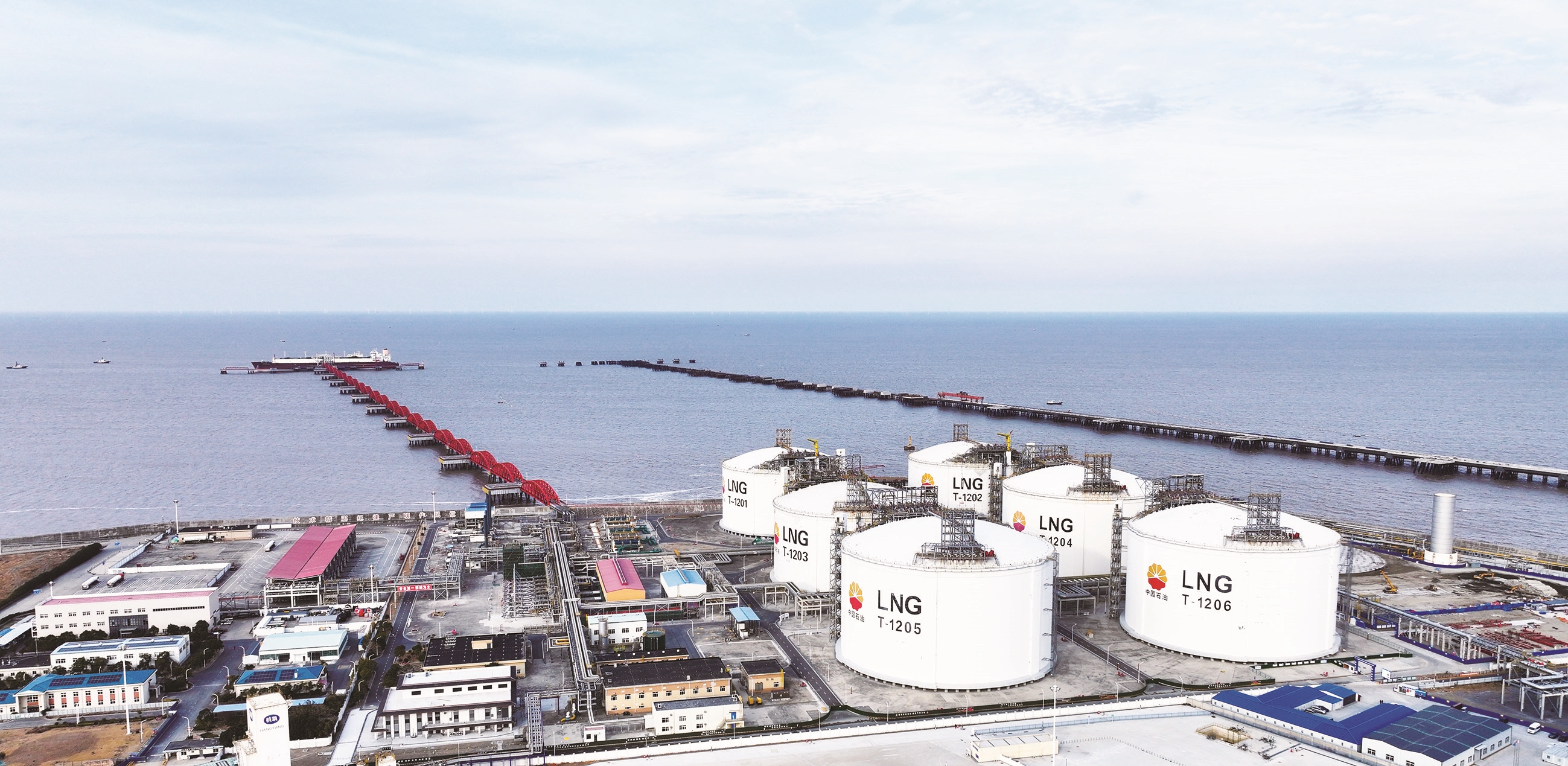据悉,作为长三角地区最为繁忙的天然气枢纽,中石油江苏LNG接收站目前拥有6座LNG储罐,总罐容108万立方米。近年来,每年接卸LNG650万吨以上,全年可满足江苏省约30%的用气需求。目前,接收站正加快推进三期配套码头及储罐扩建工程,全面建成投产后,保供能力将全面迈入千万吨级行列。