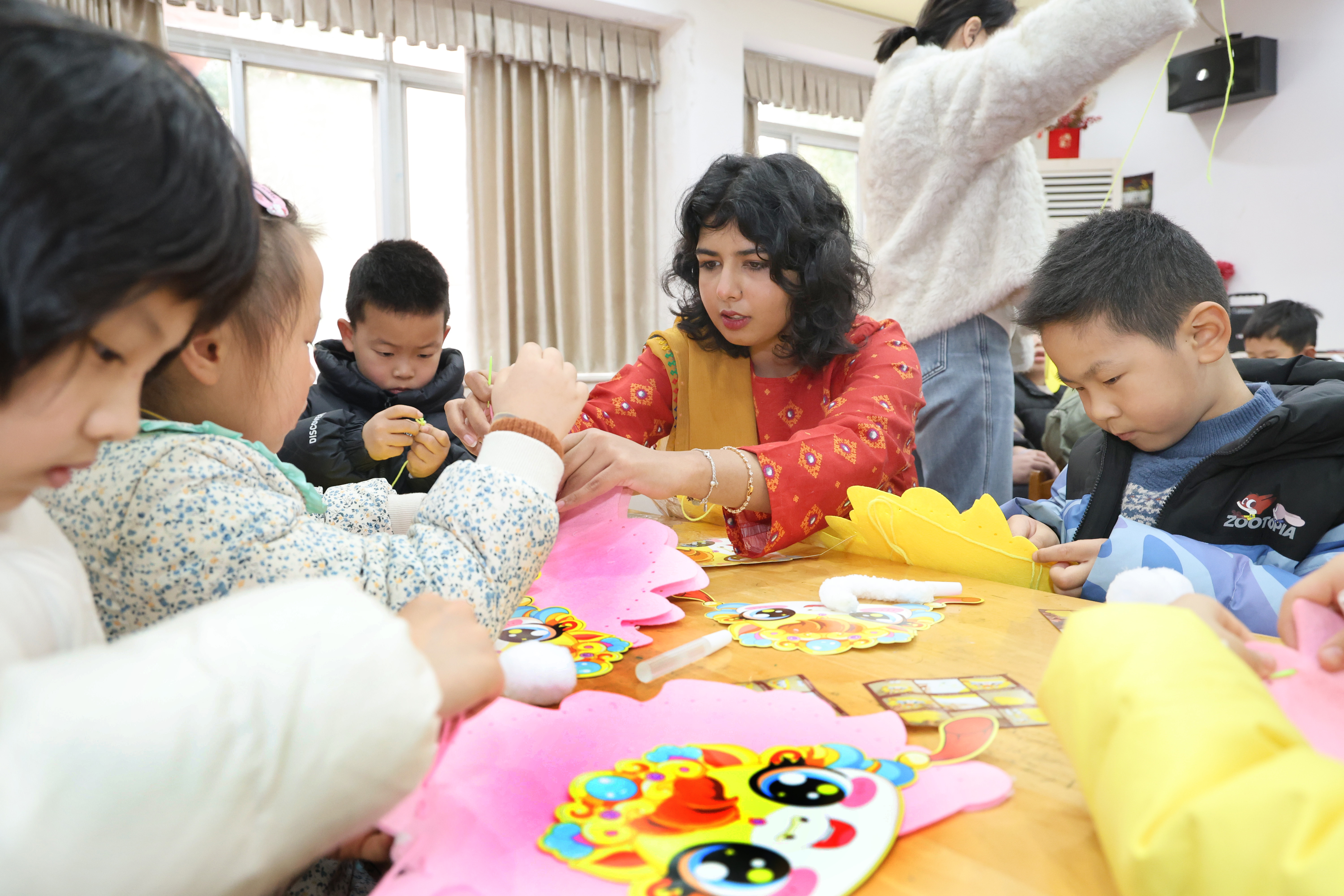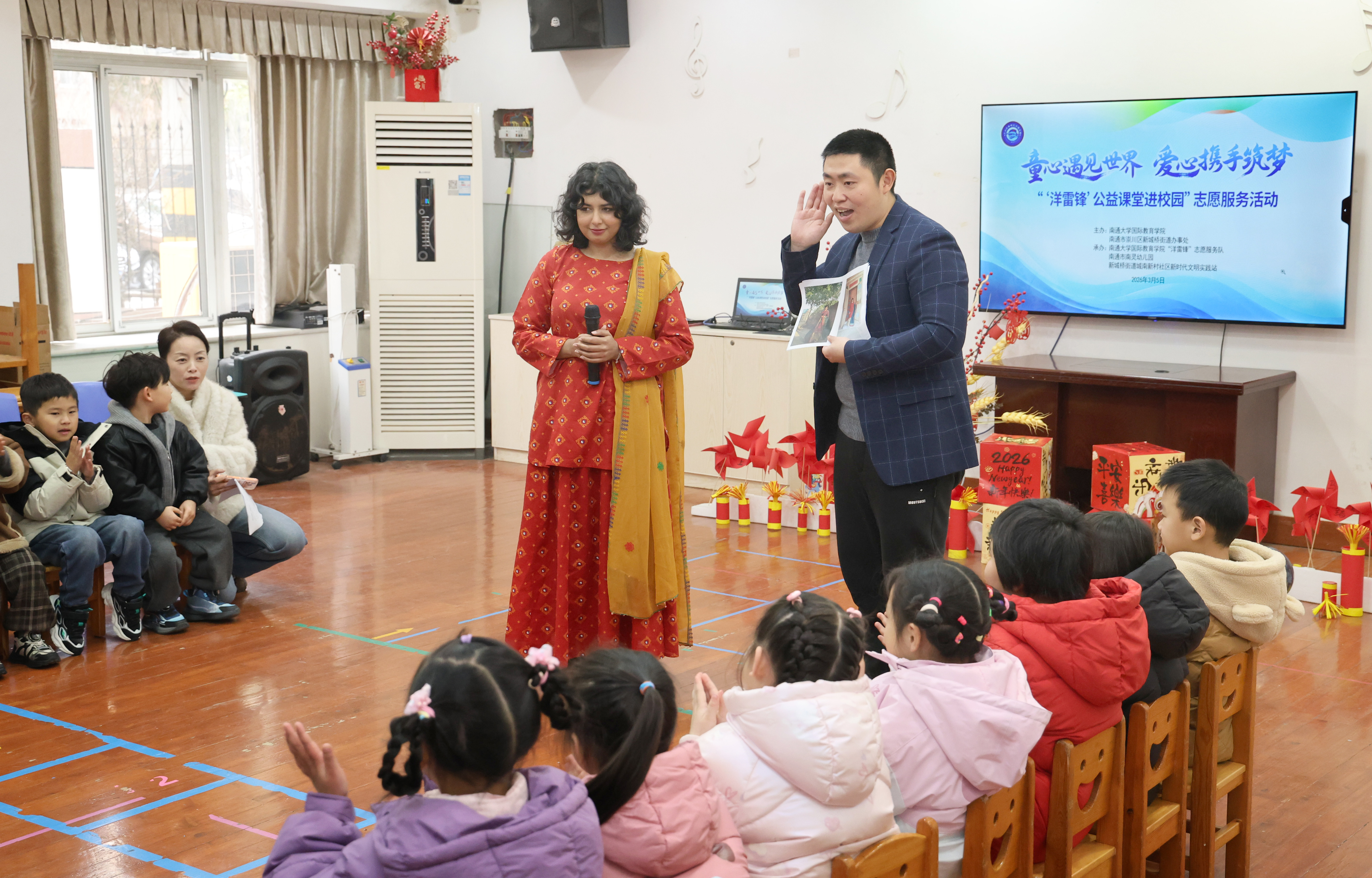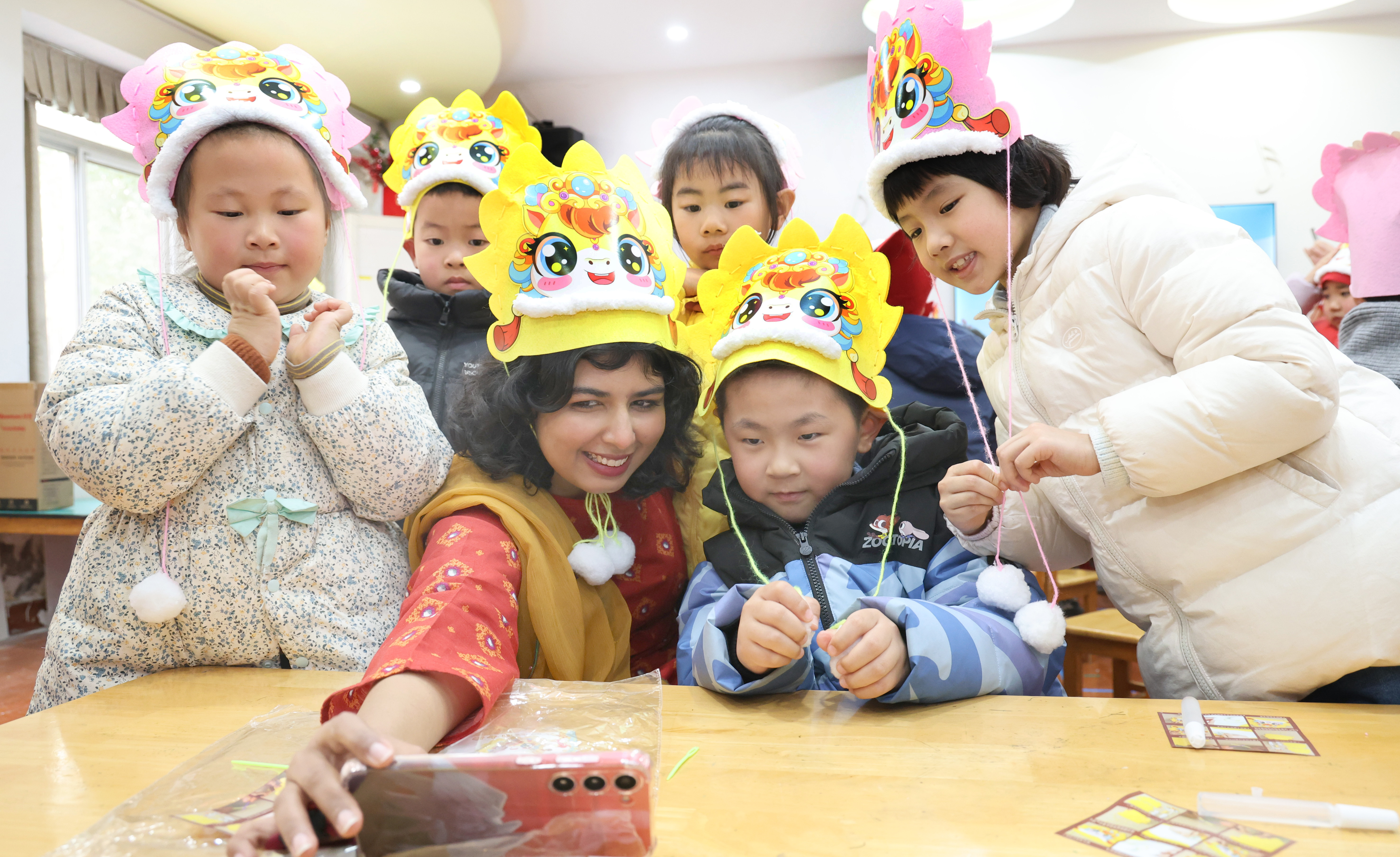 2026年3月5日,“童心遇见世界爱心携手筑梦”——“洋雷锋”公益课堂走进崇川区新城桥街道南灵幼儿园,来自巴基斯坦、尼泊尔、俄罗斯、纳米比亚等国家的“洋雷锋”们与小朋友进行丰富多彩的互动、游戏,并一起制作状元帽。