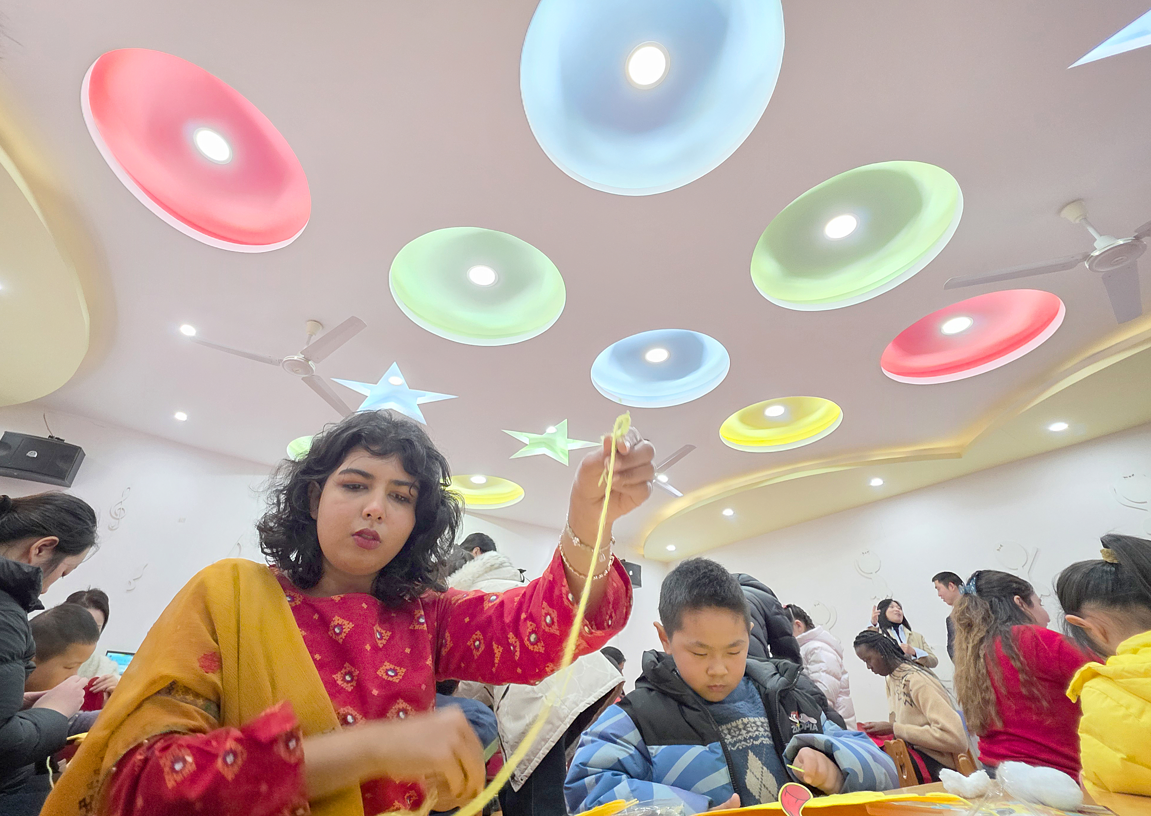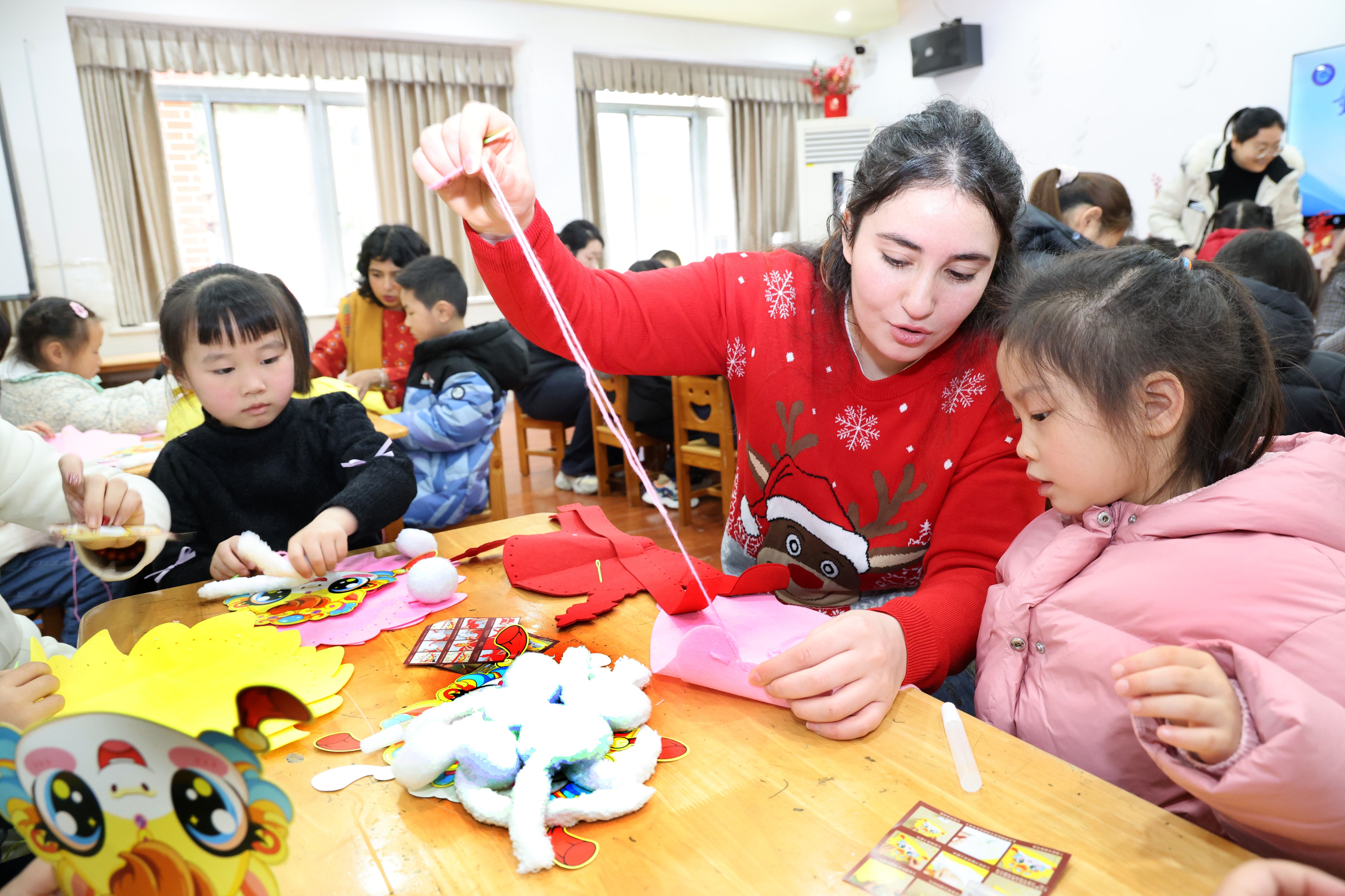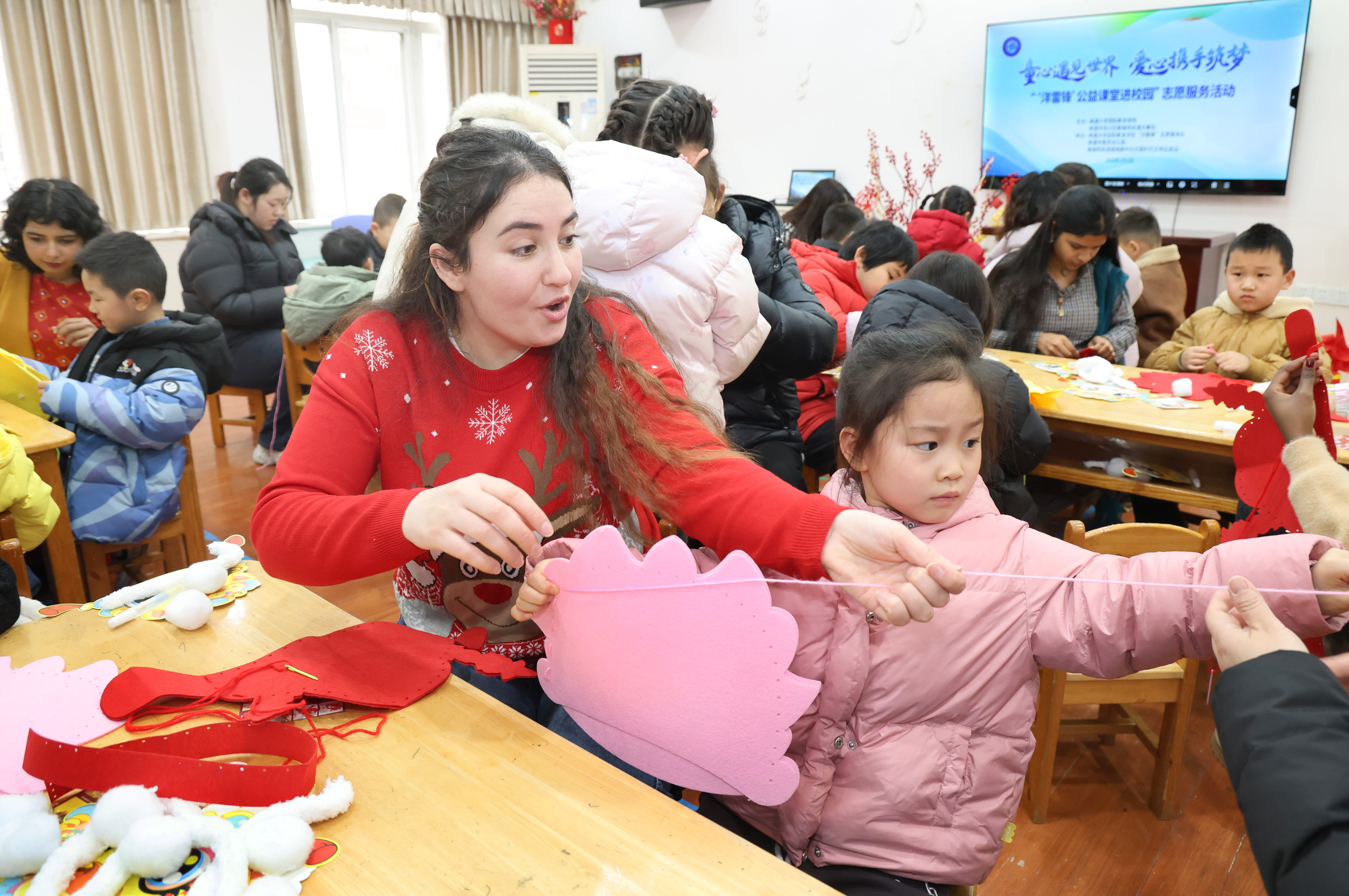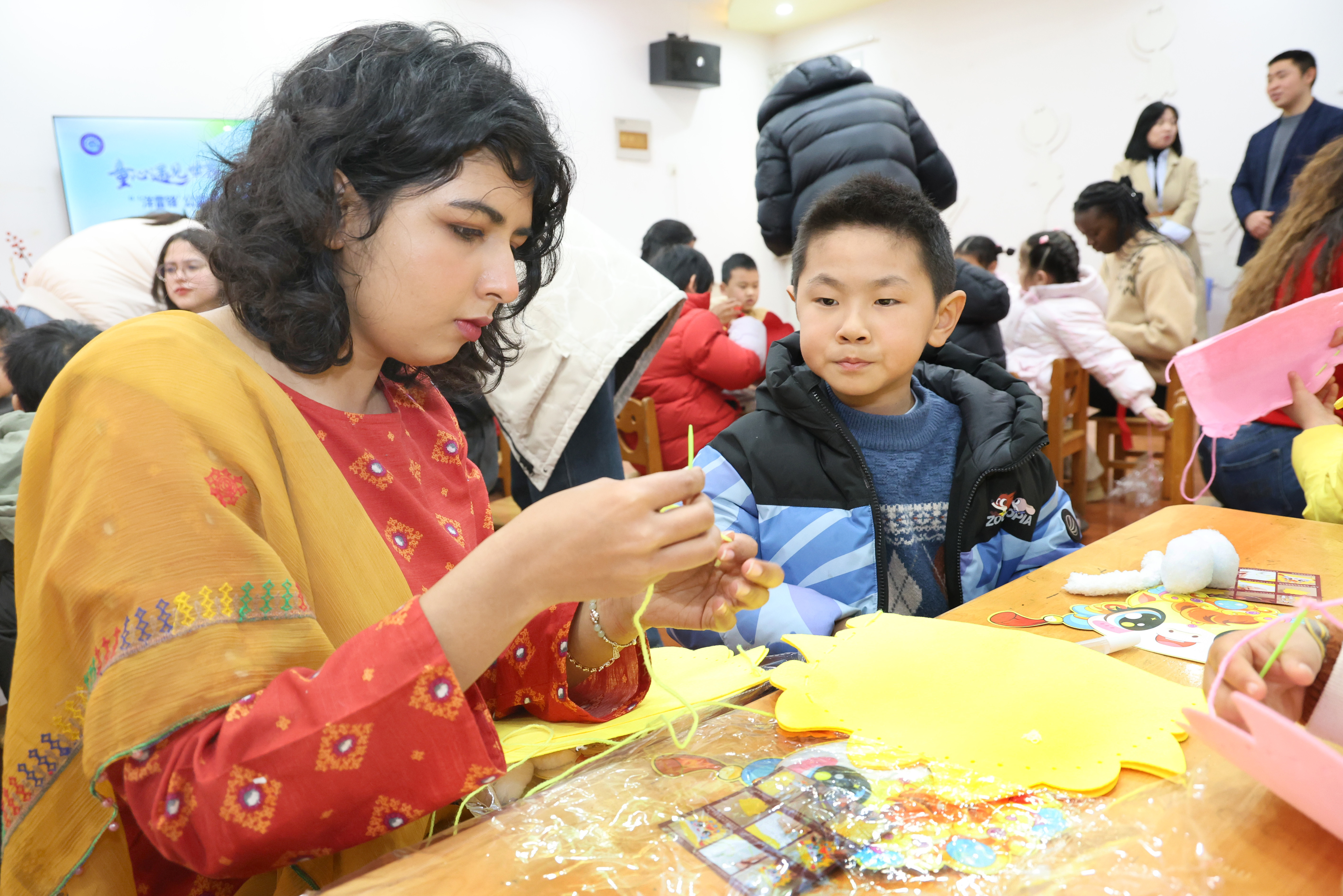 2026年3月5日,“童心遇见世界爱心携手筑梦”——“洋雷锋”公益课堂走进崇川区新城桥街道南灵幼儿园,来自巴基斯坦、尼泊尔、俄罗斯、纳米比亚等国家的“洋雷锋”们与小朋友进行丰富多彩的互动、游戏,并一起制作状元帽。