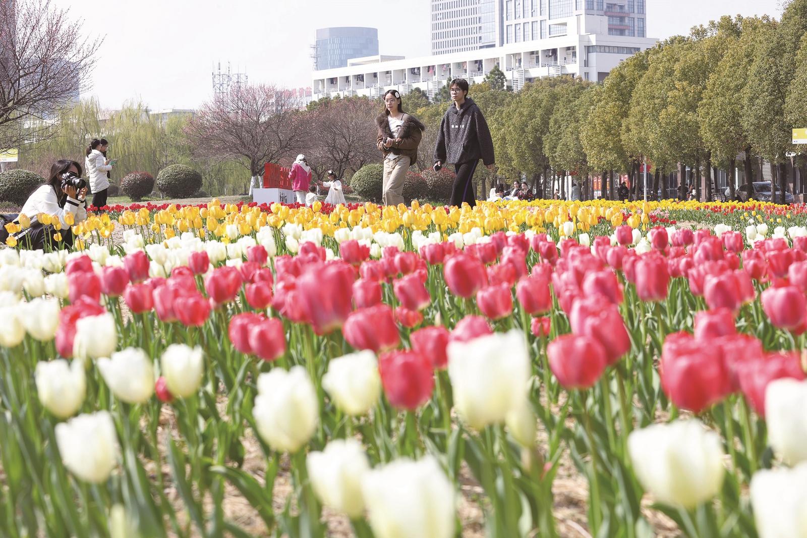 近日,随着气温逐渐回暖,南通大学啬园校区的郁金香迎来了盛放期。亭亭玉立的郁金香将书香四溢的校园装扮成了一幅流动的油画,引得师生纷纷驻足,记录下这份独属于春天的浪漫。 记者 黄哲摄
