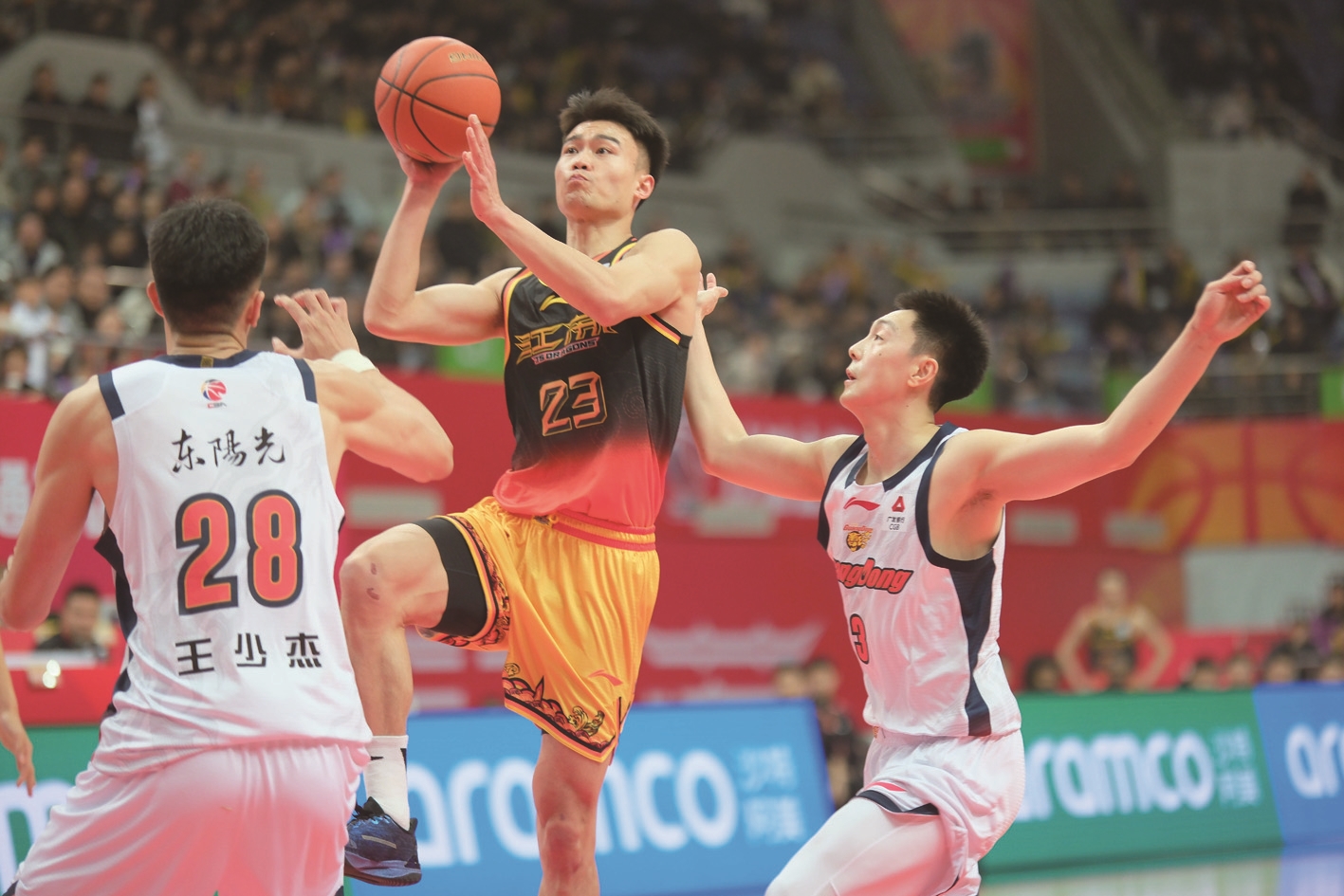 昨天,在2025—2026赛季中国男子篮球职业联赛(CBA)常规赛第28轮比赛中,江苏肯帝亚(黑黄色球衣)在南通体育会展中心主场迎战广东东阳光男篮,江苏肯帝亚最终以93∶92险胜对手。 记者 徐培钦