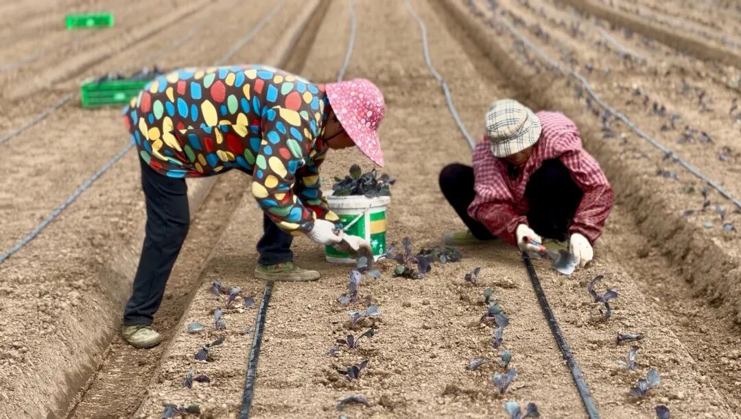 春风拂面,正是春耕备耕的关键时节。在海复镇有福家庭农场,工人们正抢抓晴好天气,集中定植紫甘蓝和青甘蓝,为下一季蔬菜供应抢抓农时。