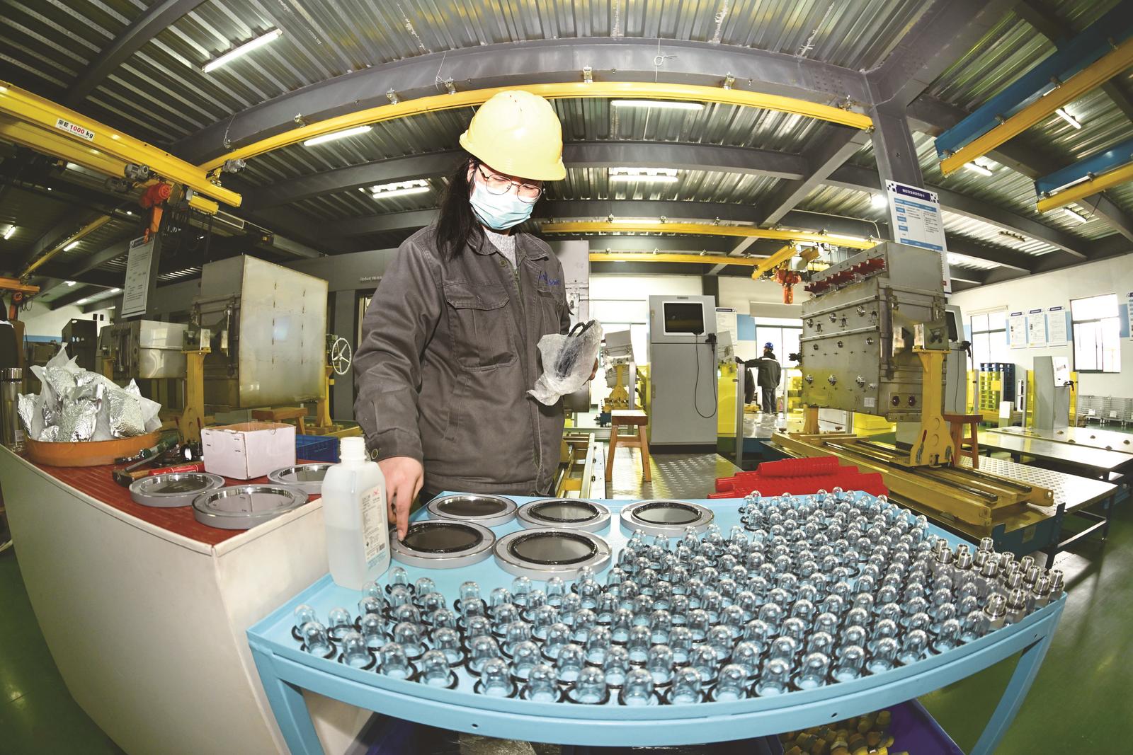 工人赶制设备产品